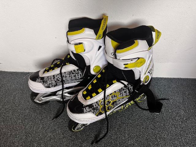 Prodám dámské kolečkové brusle, velikost 40/41, značka L.A. Sports, kolečka 78 mm, délka vnitřní stélky cca 27 cm. Brusle jsou ve velmi dobrém stavu, málo používané. Přidám i černou sportovní tašku...