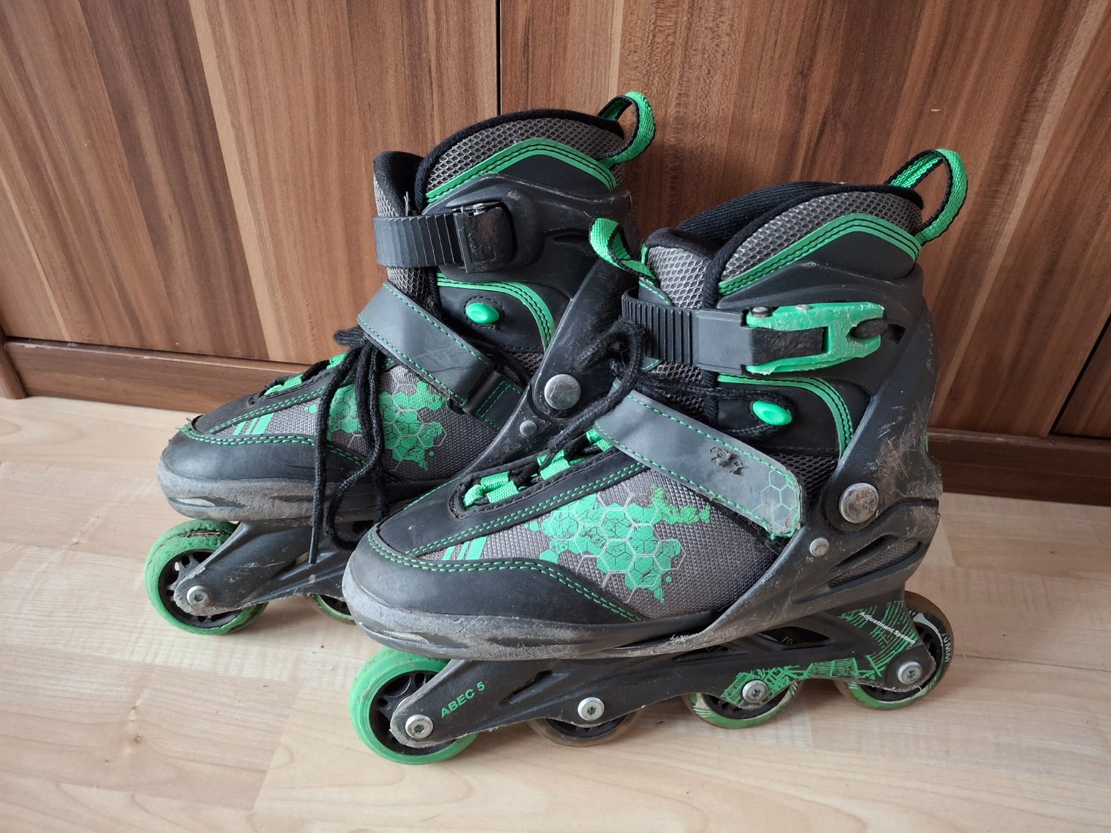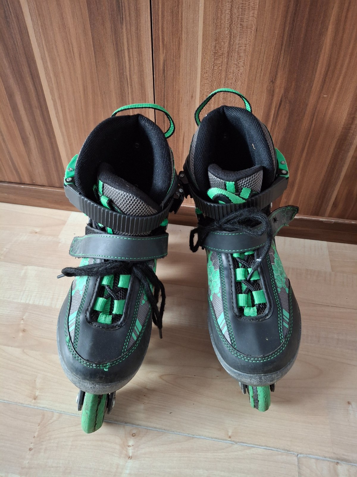 Prodám dětské rostoucí brusle vel. 32 - 36 na donošení. Kolečka už mají něco za sebou. Délka stélky 21,5 cm, šířka 7,5 cm. Cena 200 Kč. Barva černá, zelená. Jinak jsou v pořádku. Osobní předání v Praze na metru Háje, Budějovická či poštou-Balíkovnou/Zásilkovnou dle platného ceníku. Podívejte se i na mé další nabídky, děkuji.