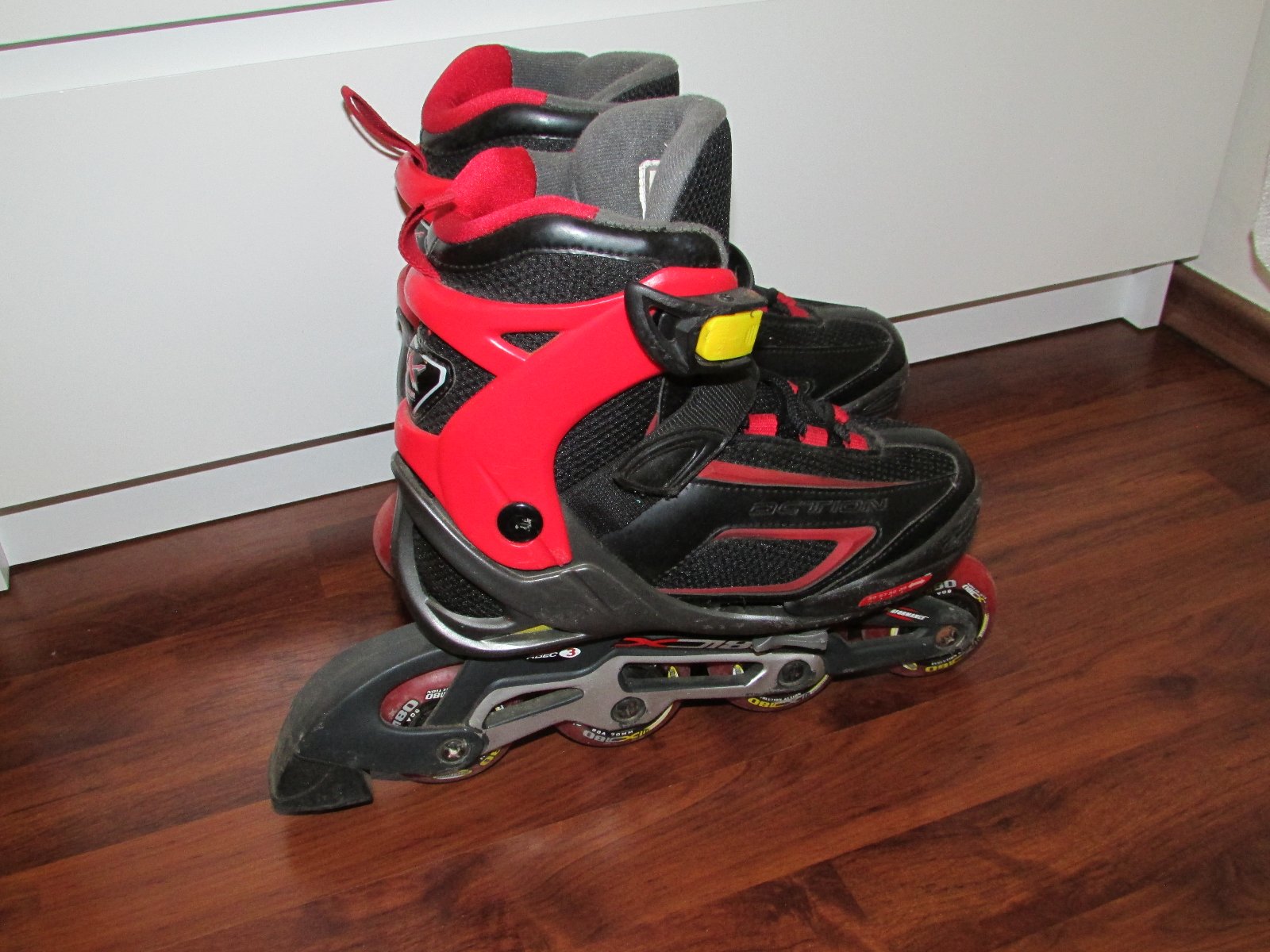 Kolečkové brusle zn. Action roztahovatelné na vel. 35-38. Koupené na bazaru, běžné známky používání viz foto. Námi nakonec nevyužité.