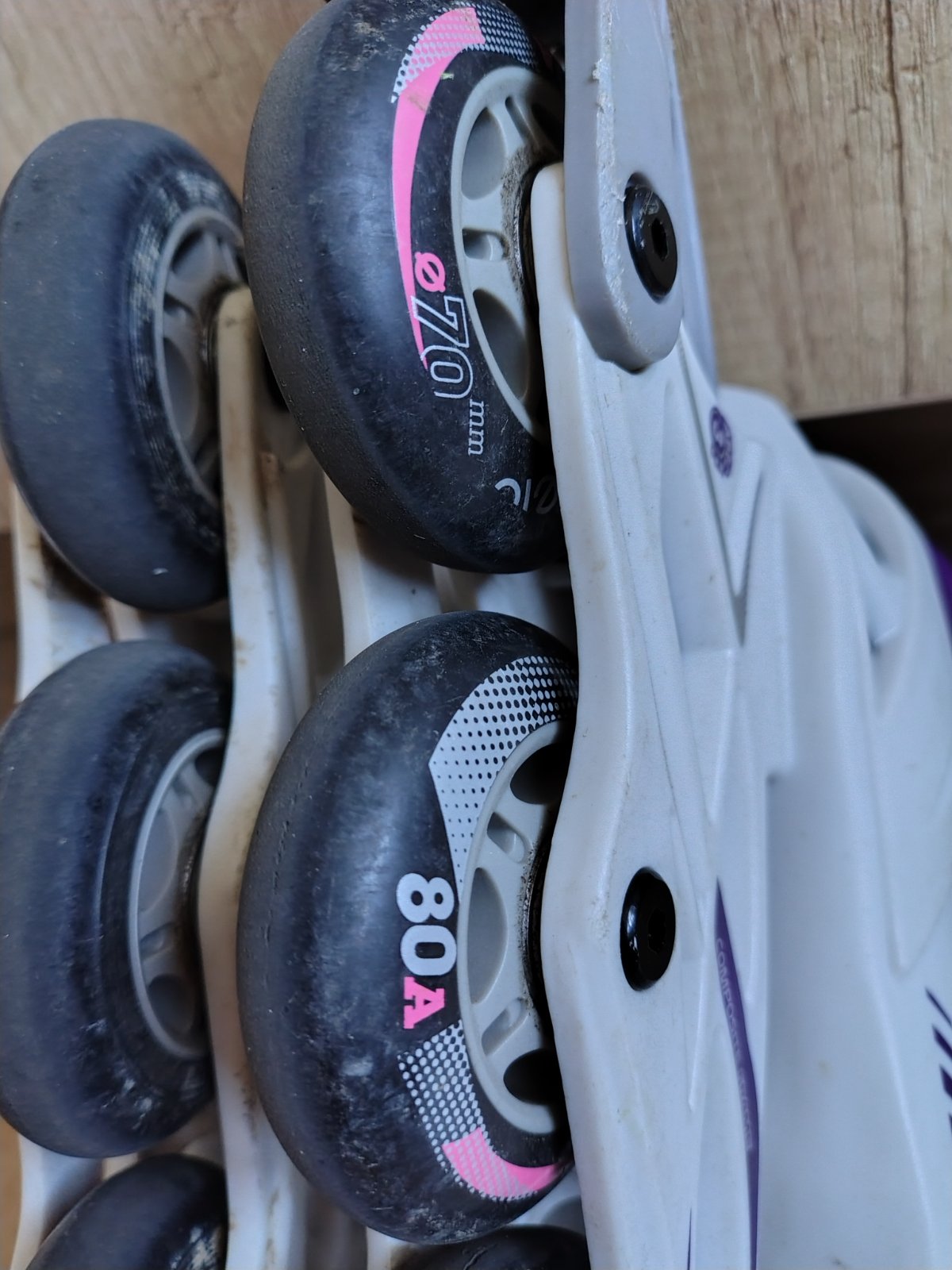 Prodám dětské kolečkové brusle, nastavitelná velikost 29-32, zn.Oxelo Decathlon,jsou na nich vidět běžné známky užívání, pásky jsou odřené viz.foto,ale suché zipy funkční, přezky funkční....k užívání zcela v pořádku. 250.- Pouze osobní odběr v Ostravě.