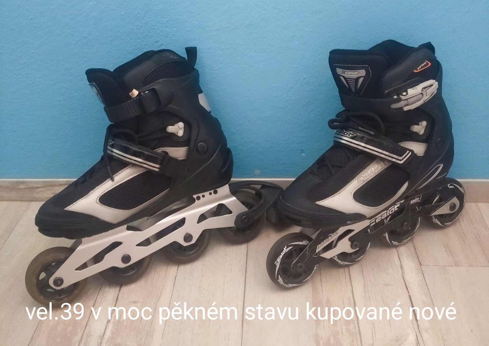 Prodám kolečkové brusle, v moc pěkném stavu, na pravé bruslí zadní brzda. Kupované nové. PC 1999kc nyní 690kc