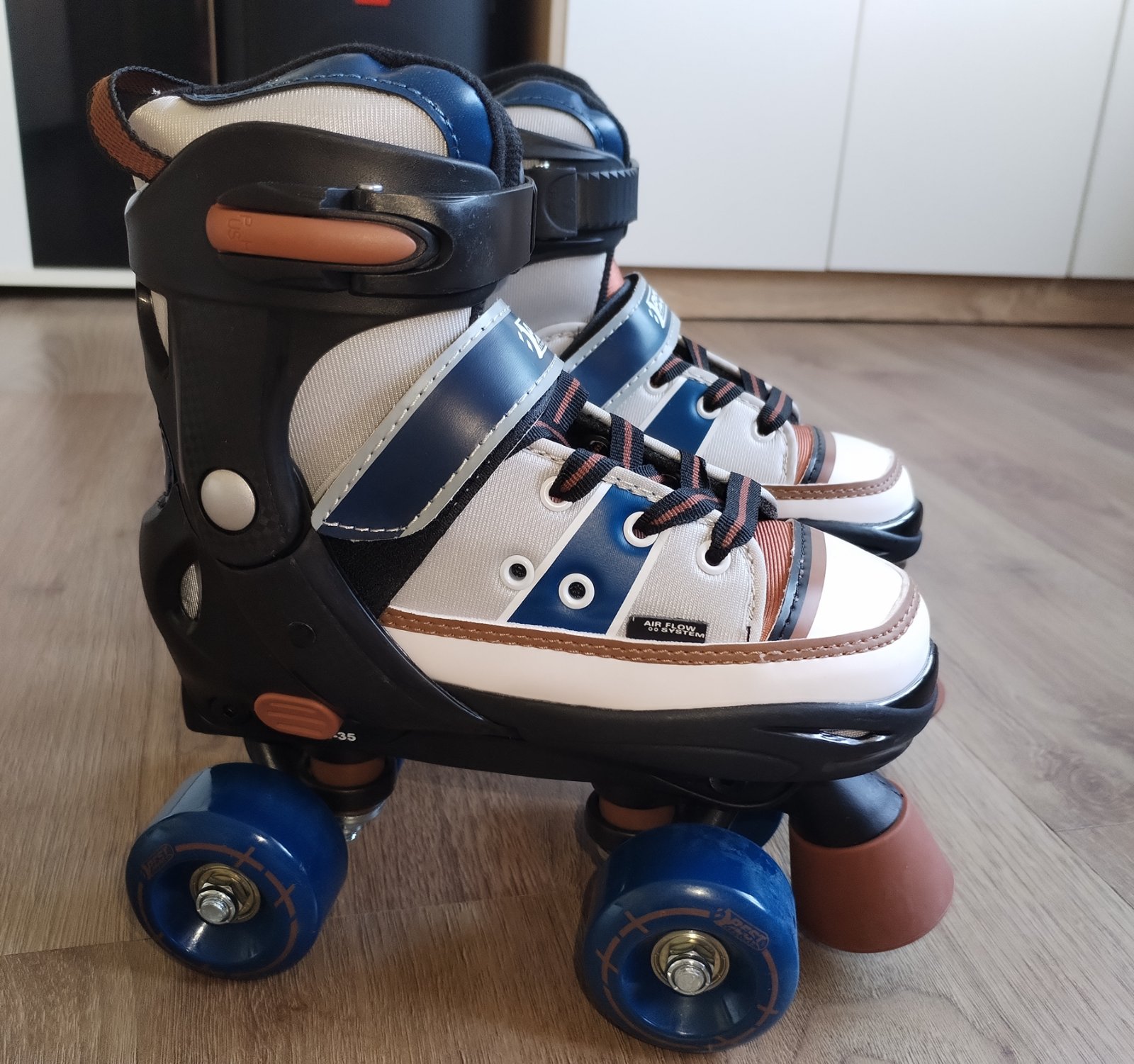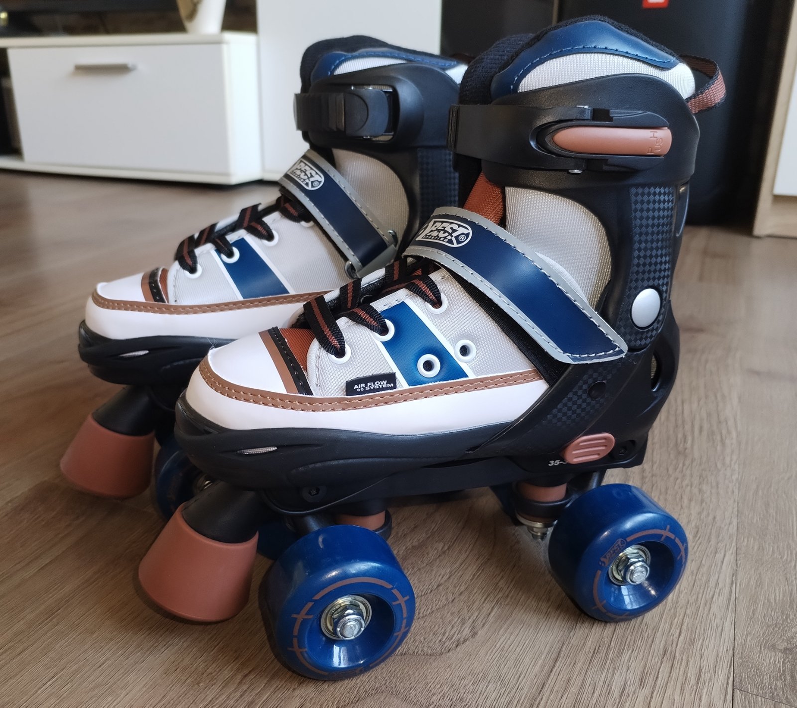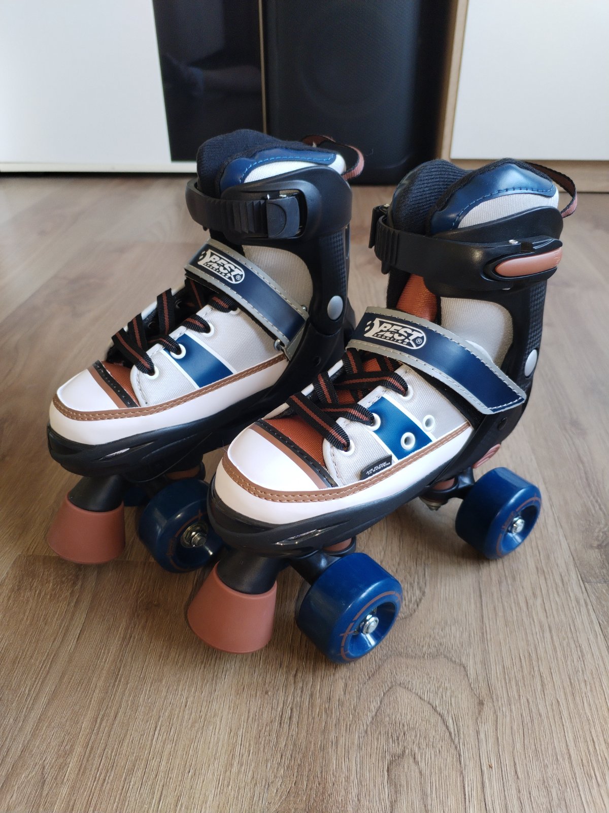 Nabízím krásné kolečkové dětské brusle známé německé značky Best Sporting Thinsuale. Rostoucí a nastavitelné ve čtyřech velikostí od 32 do 35. Air flow system, kolečka 8/5832 plynule se otáčející. Brusle nepoužité, v top stavu a z čisté nekuřácké domácnosti. Skvělé a vhodné jako dárek. Původní cena 1400 Kč, nyní cena 600 Kč