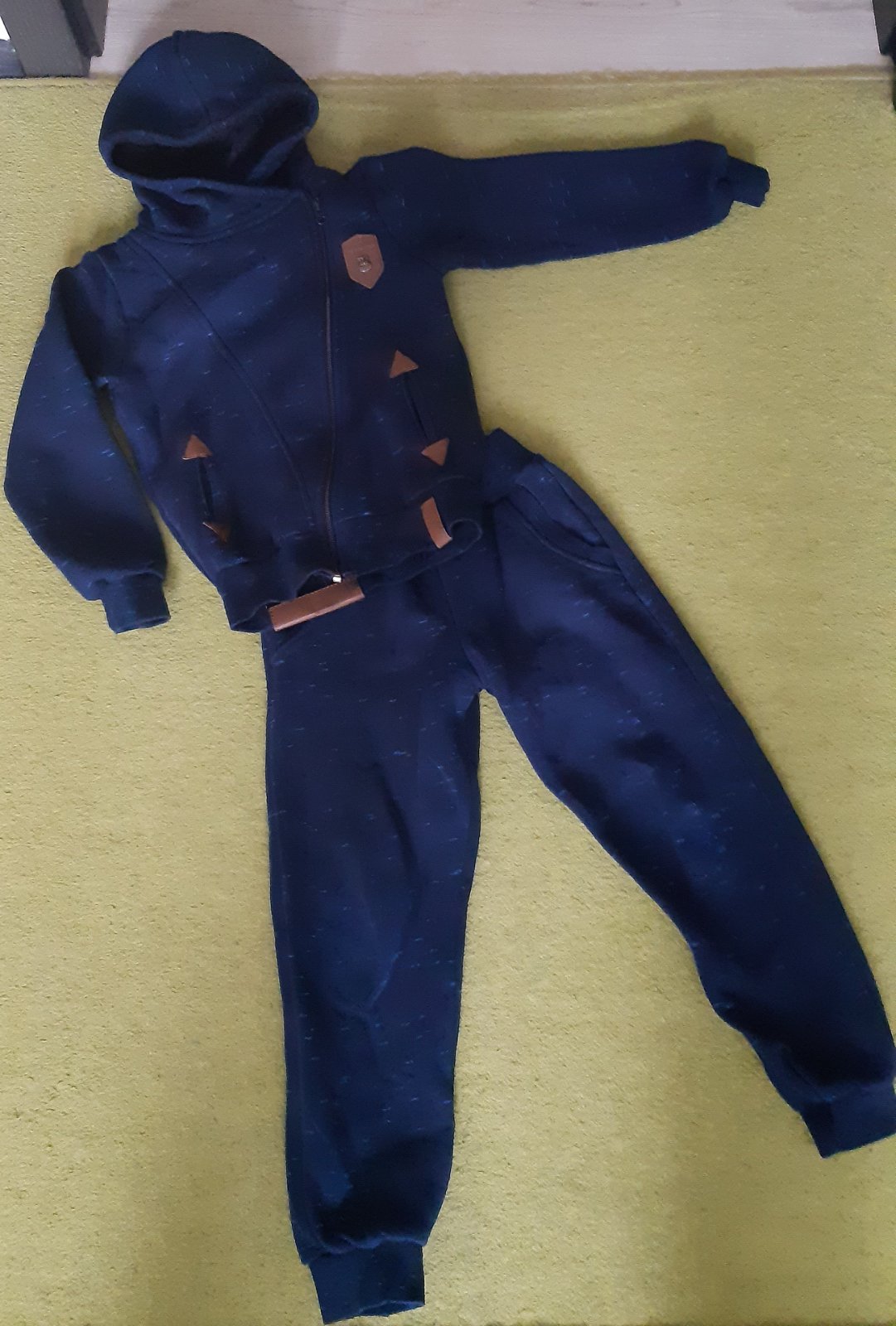 Nabízím tmavě modrou teplákovou soupravu dovezenou z ciziny, velikost odhaduju na 116, díky nápletů, na nohavicích lze nosit dříve, a nosili jsme do velikosti cca 122, na kolách je nošení znát - nemá dírky, ale je trošku šouplá, viz foto, mikina jako nová, zip křížem, vyloženě frajerská, lze nosit i mimo tepláky. Podívejte se na další mé inzeráty.