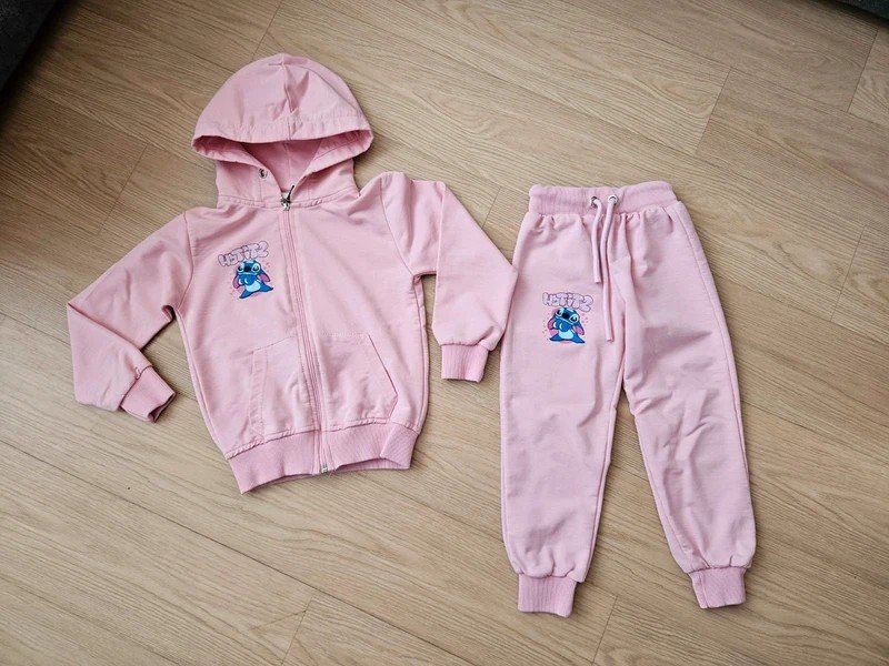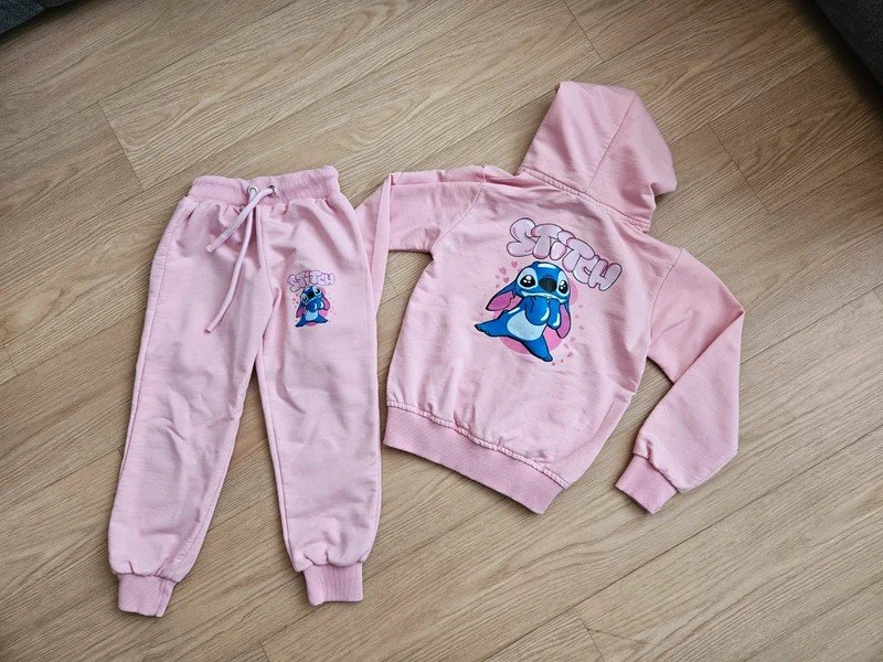 Tenká tepláková souprava s motivem Stitch, dovoz cizina, je opravdu krásná, dcera ji nestačila moc vynosit, měla asi 3x, nošená ale vady jako takové jsem nenašla, jen chybí šňůrka u kapuce, velikost 98/104