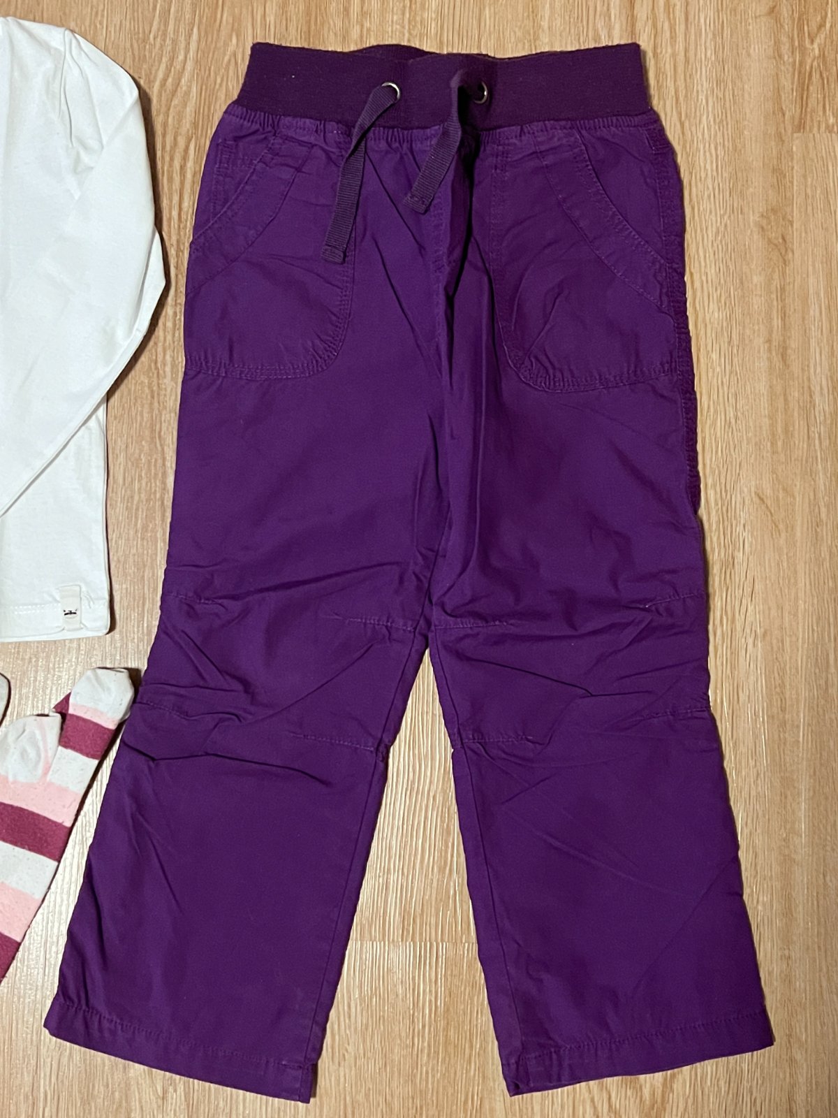 Kalhoty – Pidilidi, teplejší s bavlněnou podšívkou, v pase na stažení tkanicí, kapsy, knoflík na srolování nohavic, super stav, bez vad