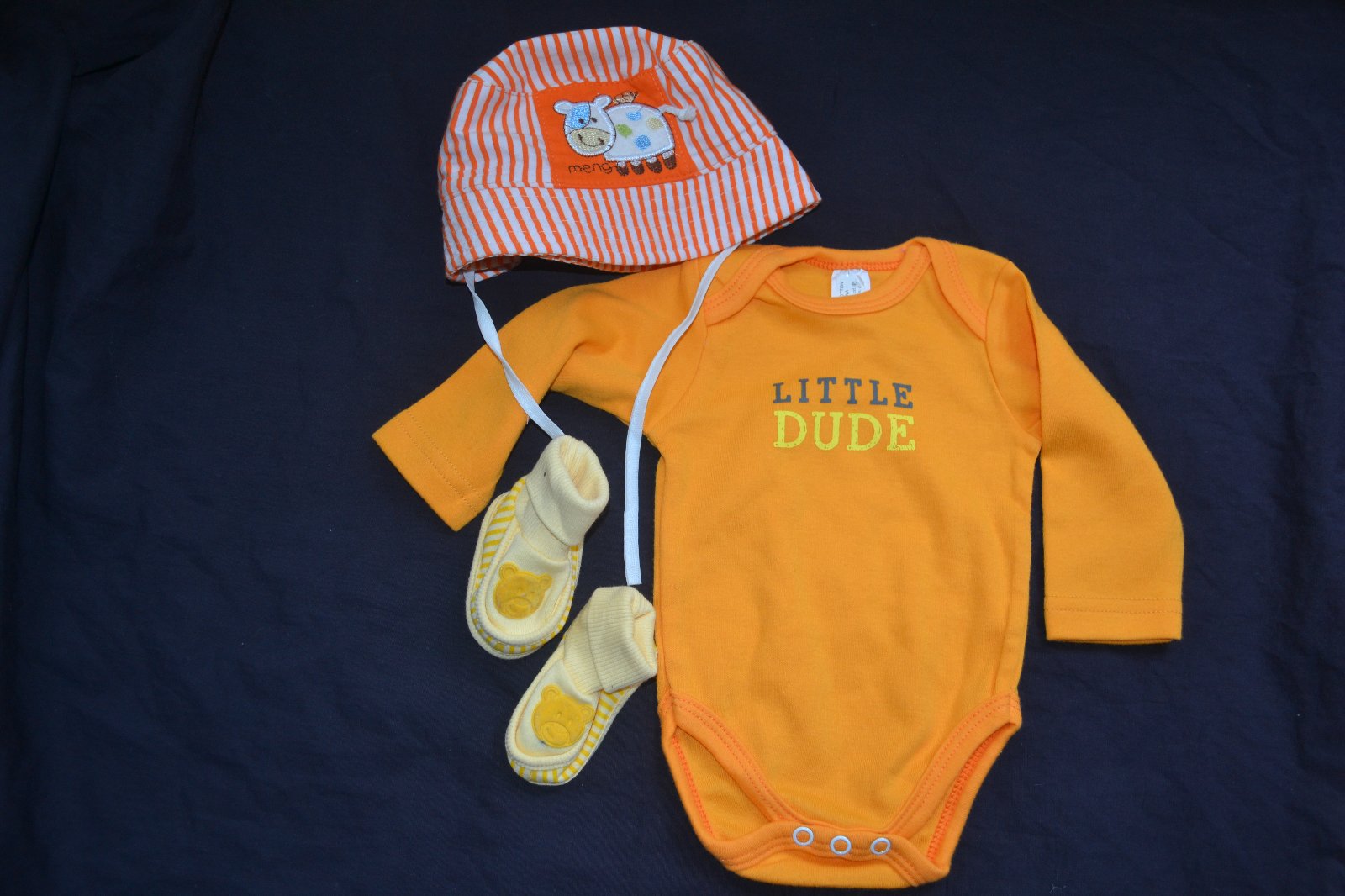 praktický nový set kojenecký,na 3-5 měs., body,klobouček a bačkůrky, vše bavlna, cena celkem za všechny tři kusy
