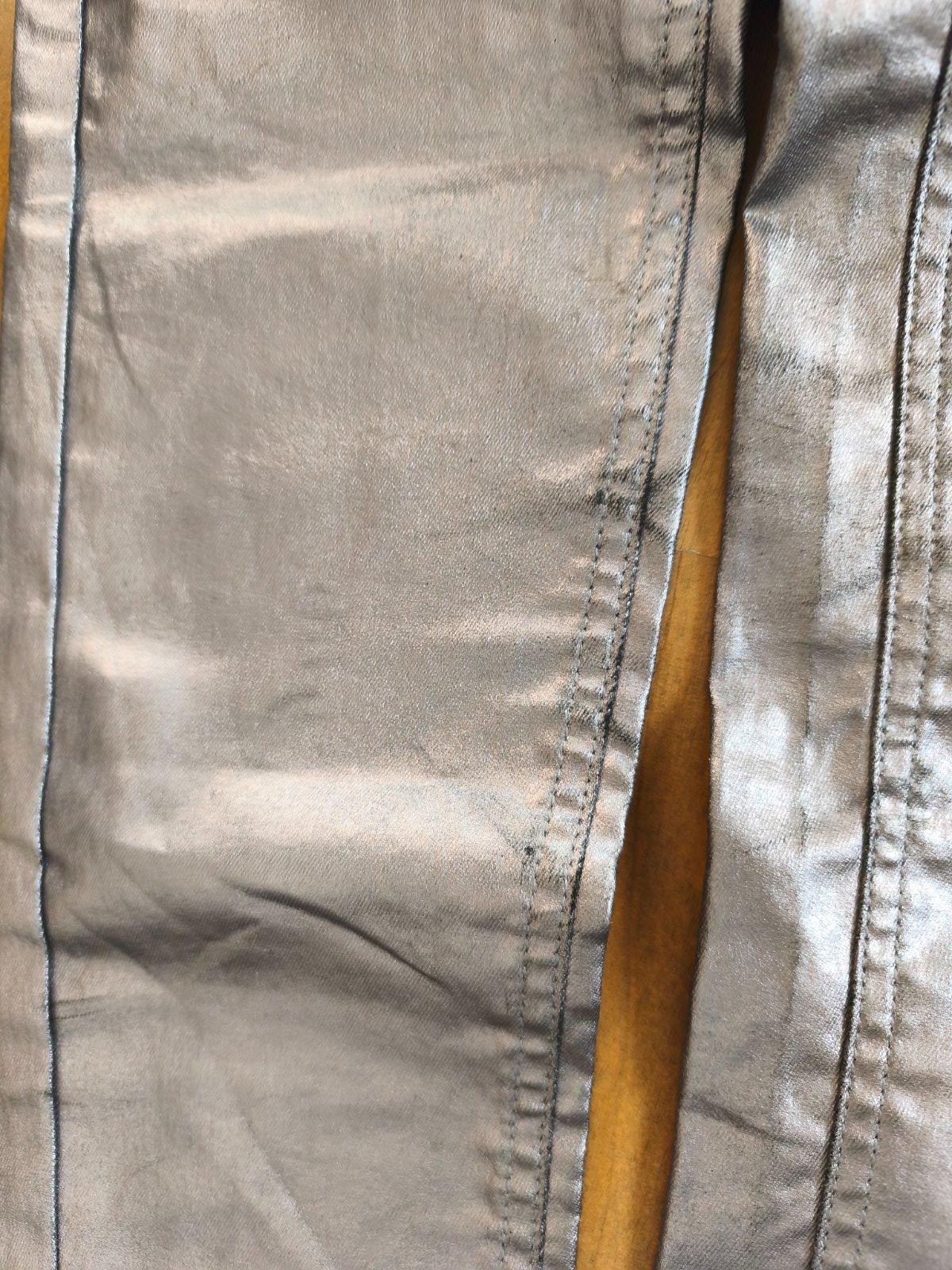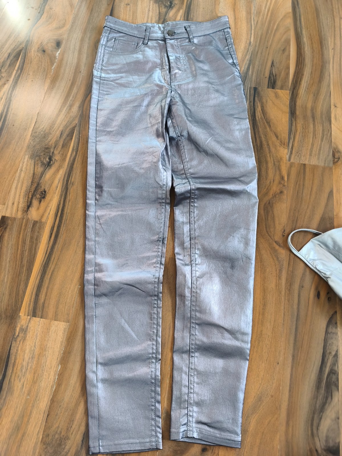 Pouze jednou vzatý set, třeba na karneval k nějakému kosmickému kostýmu - skinny kalhoty Calzedonia, hned ošoupané na několika místech, vel.S, ale sedí XXS/XS, pro velmi štíhlou slečnu, jsou o dost menší 220 Kč. Stříbrný top Shein, uvnitř lehce teplý chloupek, stříbrná vrstva po natažení lehce praská viz foto, takhle to je u tohoto materiálu je také též jednou vzatý.