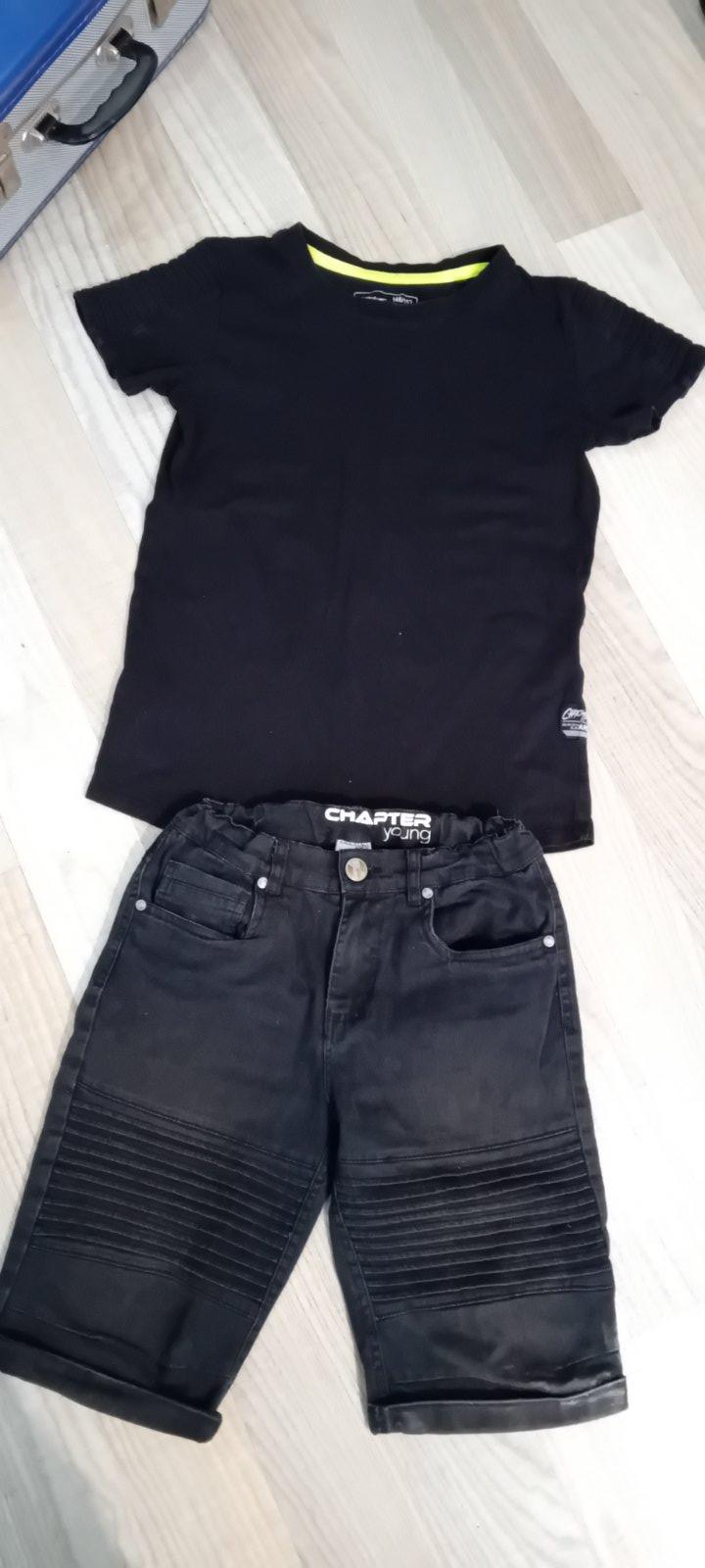 Komplet trika a riflovych kraťasů ve velikosti 152.Takřka nenošené. Kraťase mají v pase regulaci na gumu.
