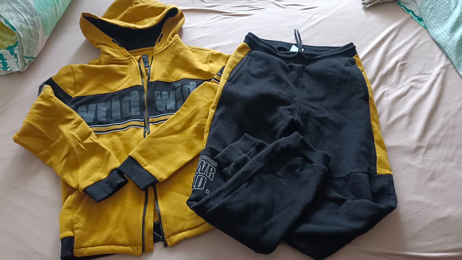 Krásná souprava po synovi brzo z ní vyrostl. Souprava se skládá z mikiny,kalhot a kraťas. Kvalitní materiál. Doporučují.