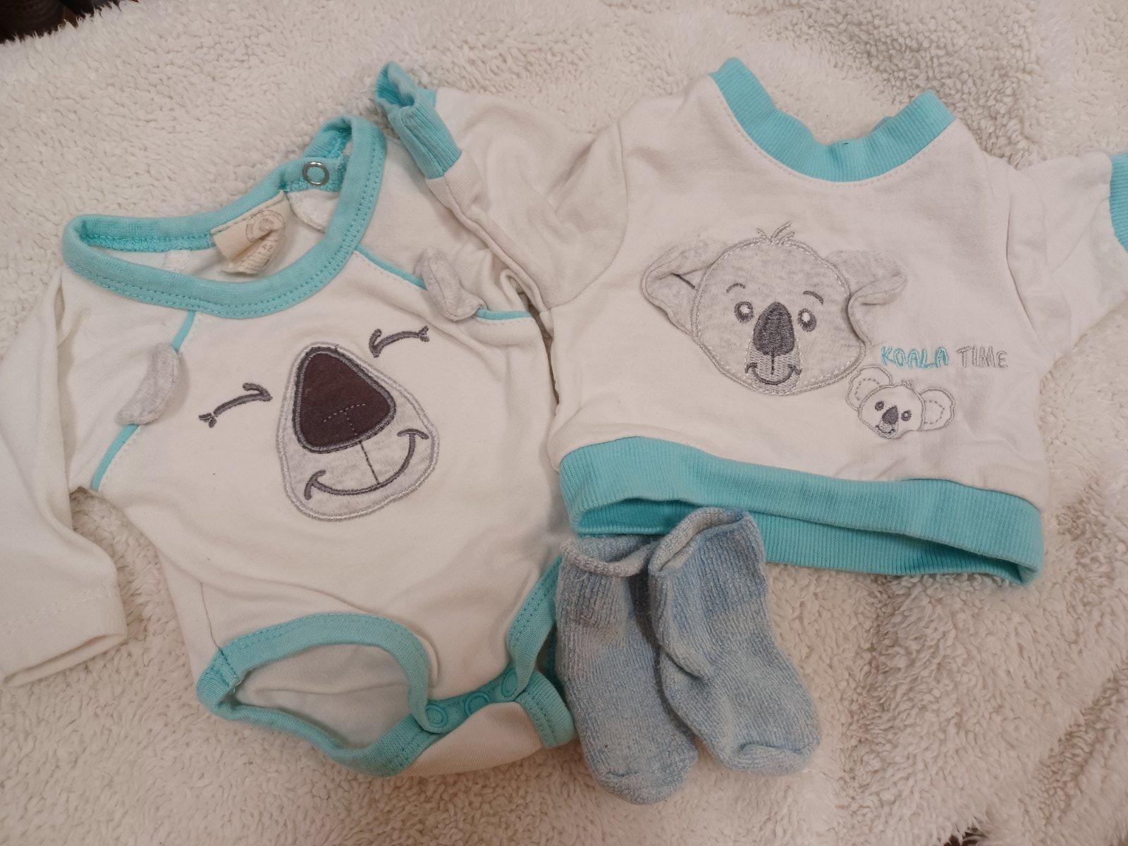 Set s koalou pro nedonošené miminko vel.42 - body s dlouhým rukávem + tričko či mikinka. Jen vypraný + ponožky zdarma.