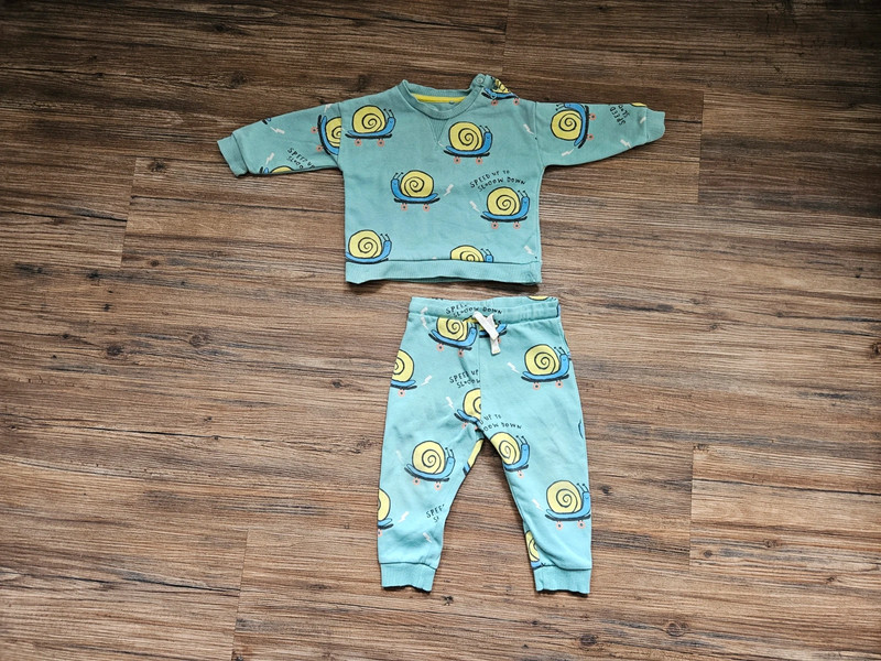 Tepláková souprava šnek tepláky mikina Fred and Flo 74 Na tepláčkách pár flíčků a u kolem lehce odřené