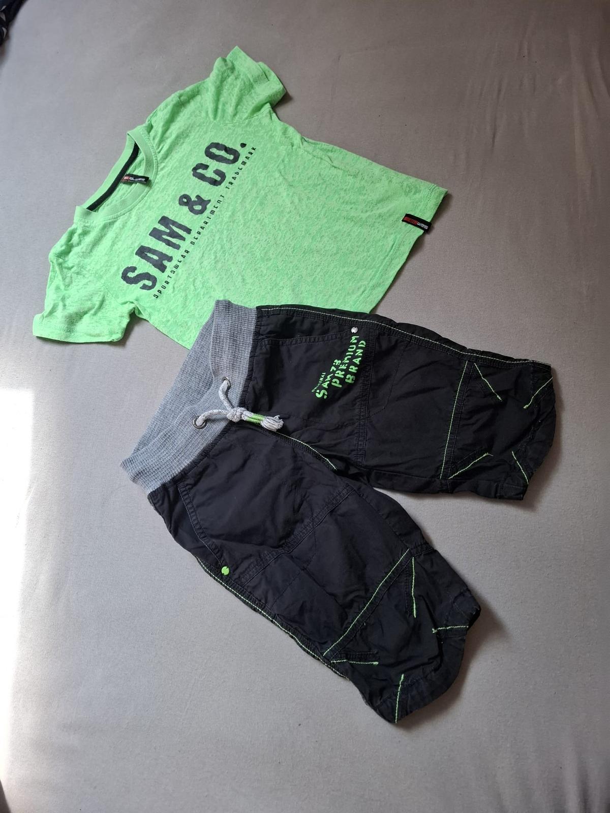 Cena za komplet 170 Kč. Cena zvlášť za kraťasy 120 Kč, zvlášť tričko 80 Kč. Velikost 116