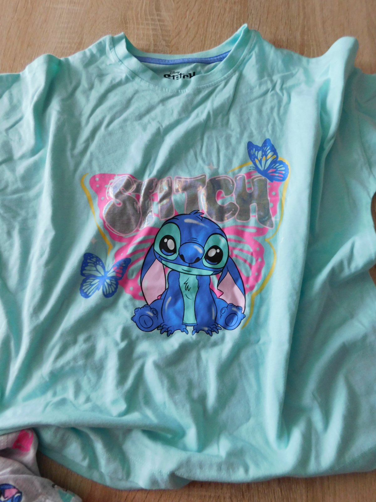 Krásný dívčí letní komplet ... Nový, bez visačky ... triko a kraťasy se Stitchem .... vyrobeno ze 100% bavlny ... super kousek do horkých dnů na pohodu či na spaní ...