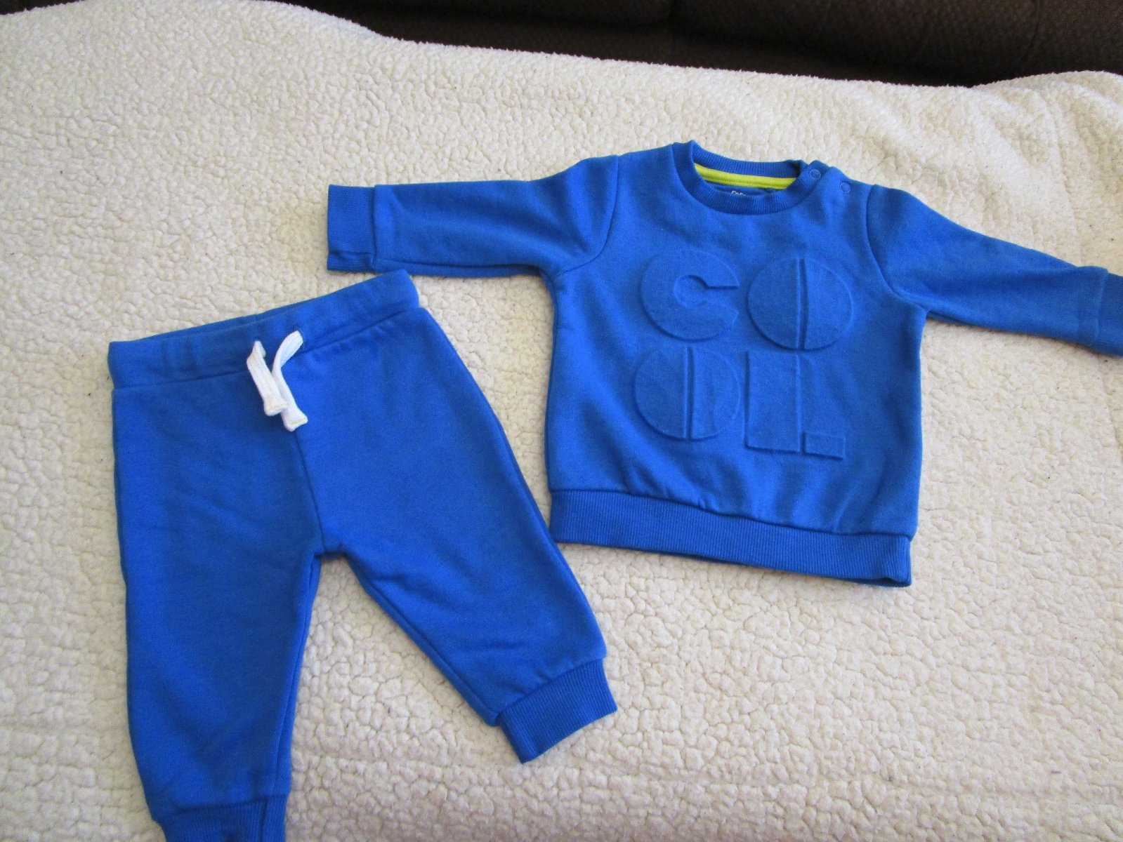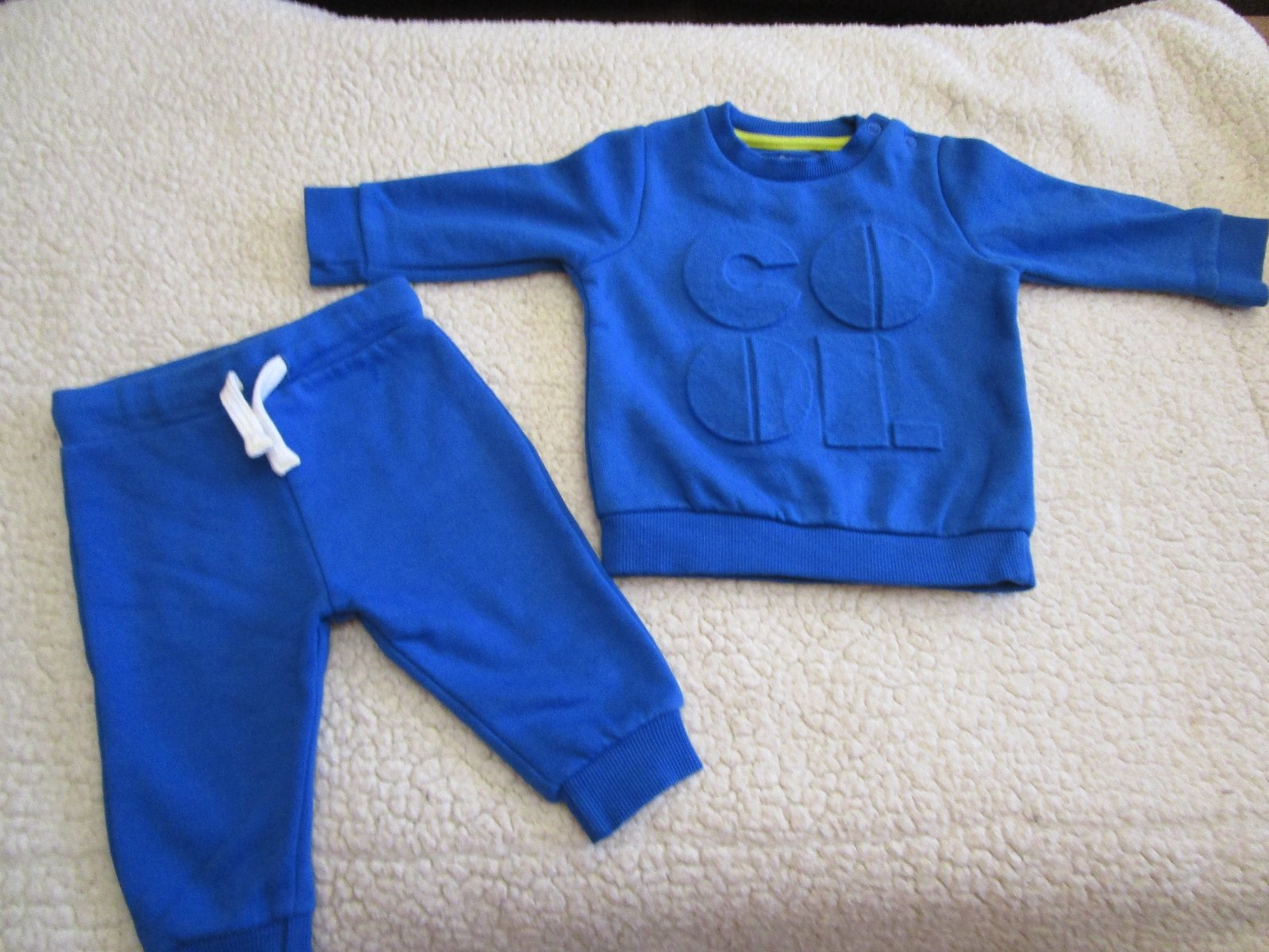 Oteplená modrá bavl. souprava, mikina + kalhoty (tepláky), 1x nošená - jako nová, vel. 62, cena jen 89 Kč, zn. F&F.