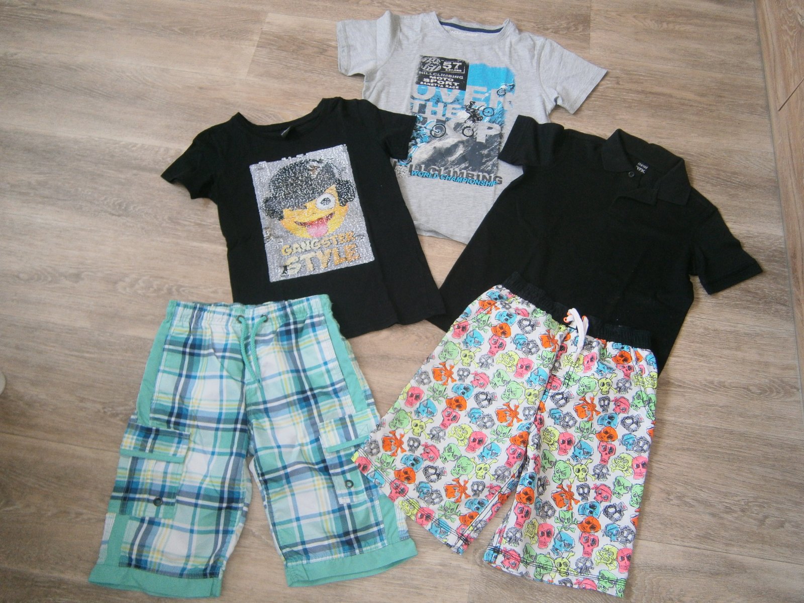Prodám trika a koupací kraťasy vel. 134/140. Délka trik cca 52 cm. Plavkové kraťasy délka 46 cm. Možno prodat i jednotlivě. Cena je bez poštovného a nesmlouvám o ní. Na dobírku nezasílám, možnost osobního odběru.