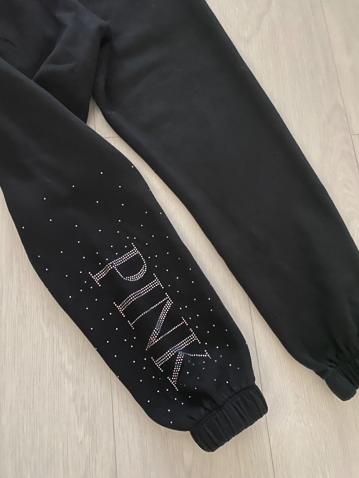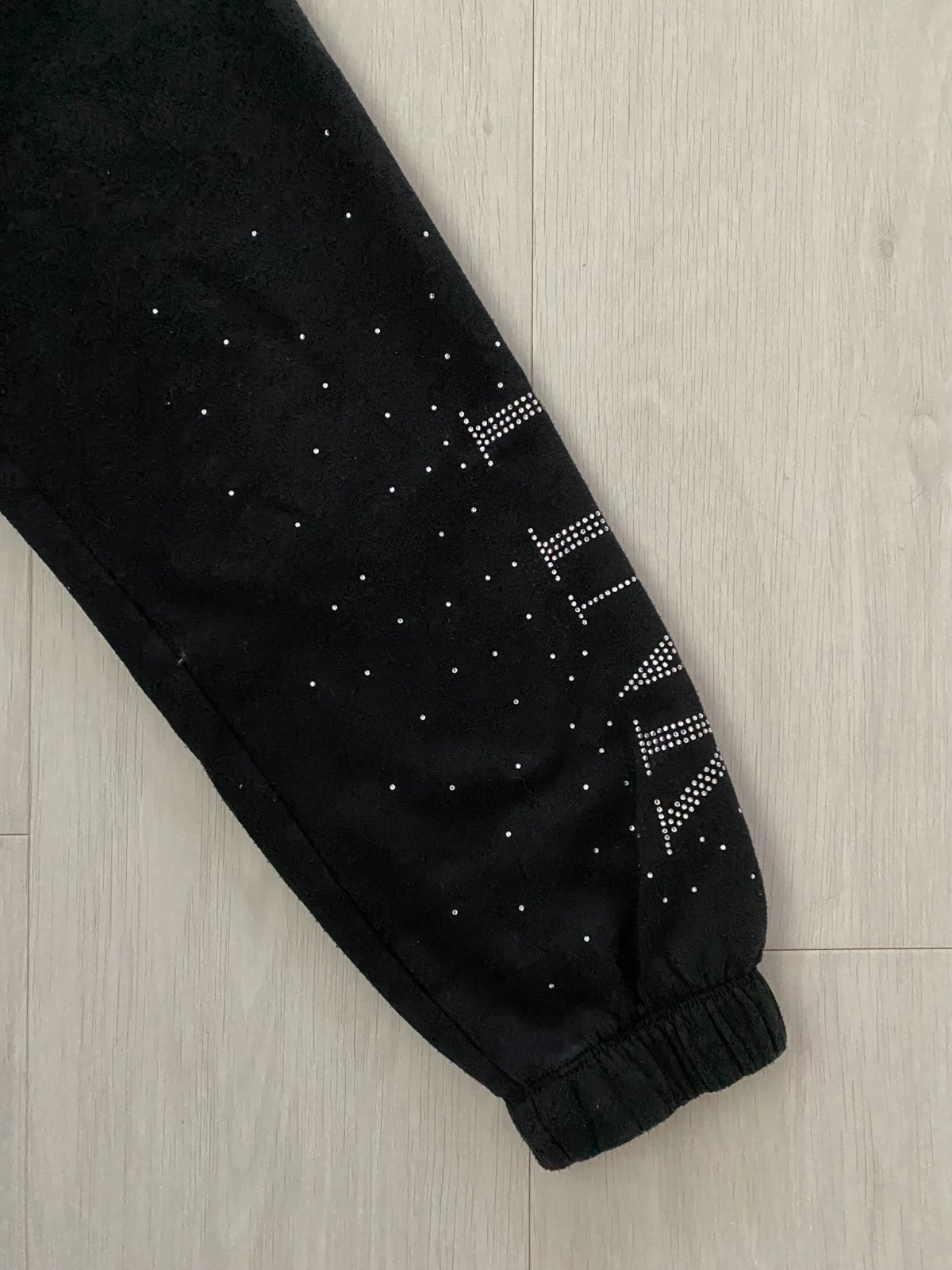 Luxusní souprava se spoustou kamínků na předním a hlavně zadním díle, i na rukávech (žádný nechybí); kapuce, 2 kapsy na mikině i na teplácích.