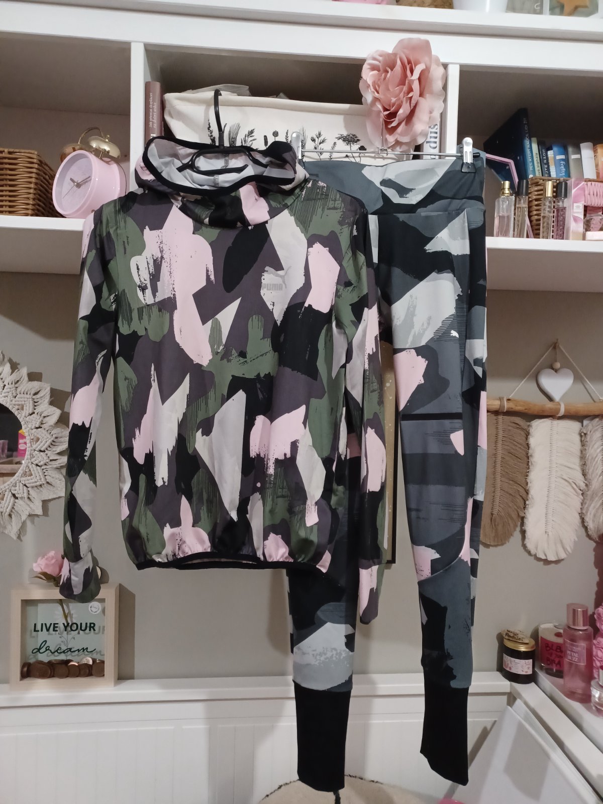 Luxusní sportovní set Puma - mikina 12-14 let sedí XS + legíny XS. Málo nošené, nějaký ten pucík či zatrhlá nitka se najde.