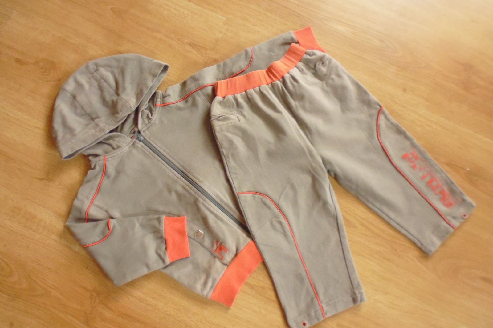 téměř nenošená, ale už je vybledlejší, vel.psaná 122, mikina: délka 38cm, pod pruramky 2x36cm, tepláky: délka 51cm, pas 2x22cm až 2x43cm