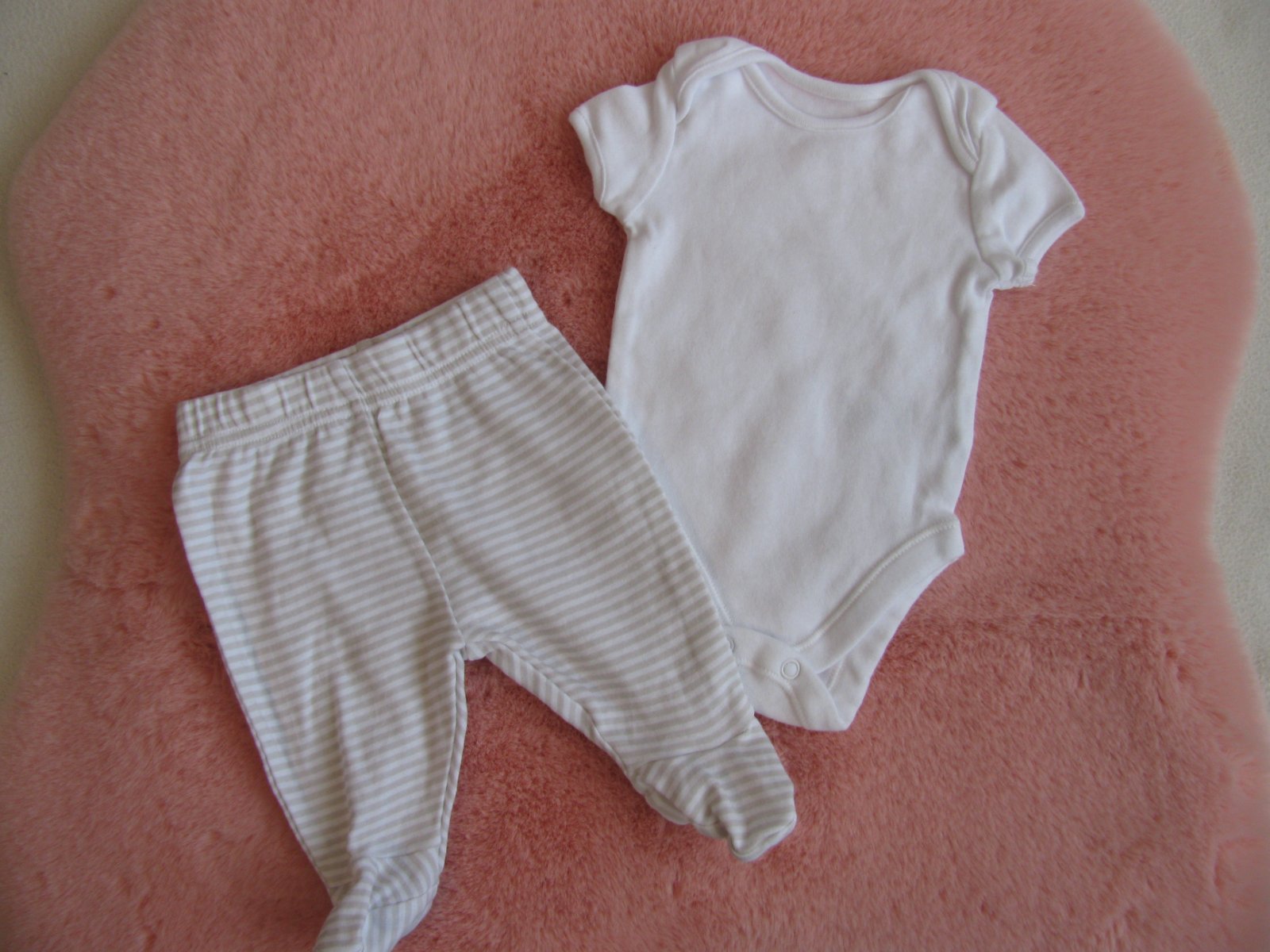 Krásná bavlněná souprava , bílé body mezi nožkama na patentky, polodupačky s jemným proužkem. 100% bavlna.