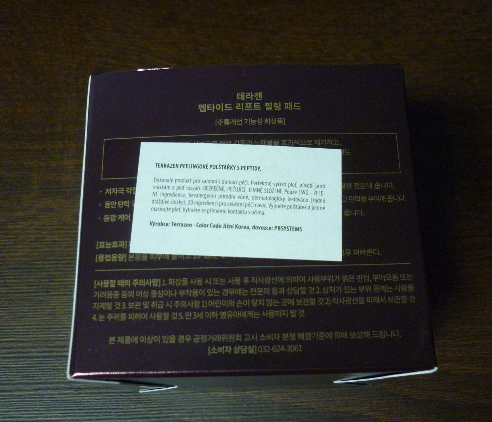 Prodám luxusní peptidové peelingové polštářky korejské kosmetiky značky Terrazen, nové s visačkou.