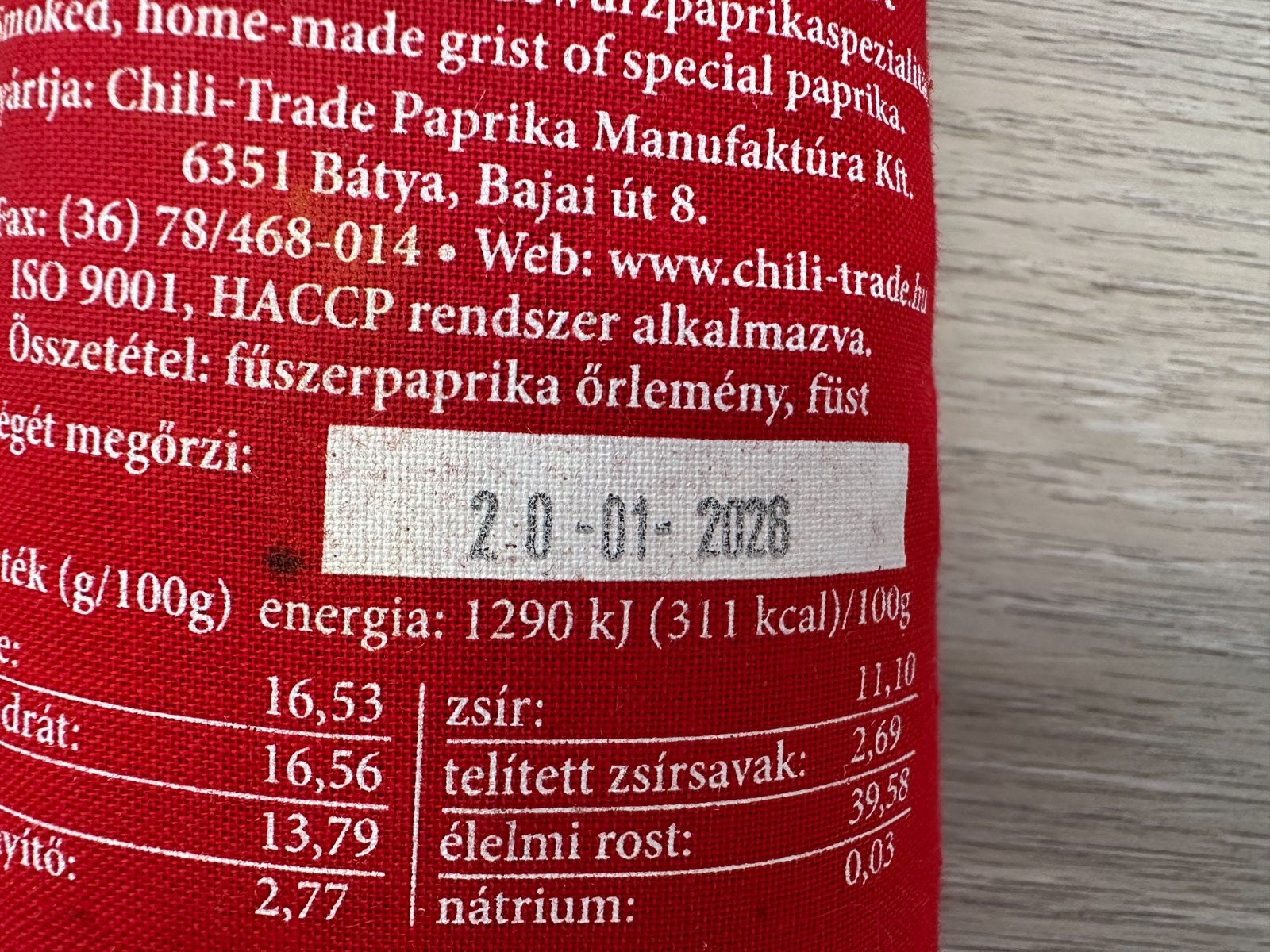 - pálivá paprika z Maďarska, 250 g, v látkovém sáčku, expirace: 20. 1. 2028
