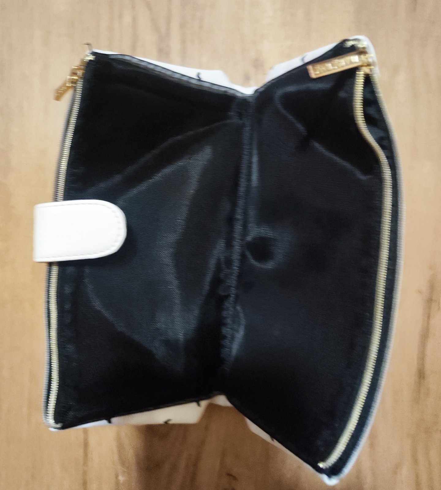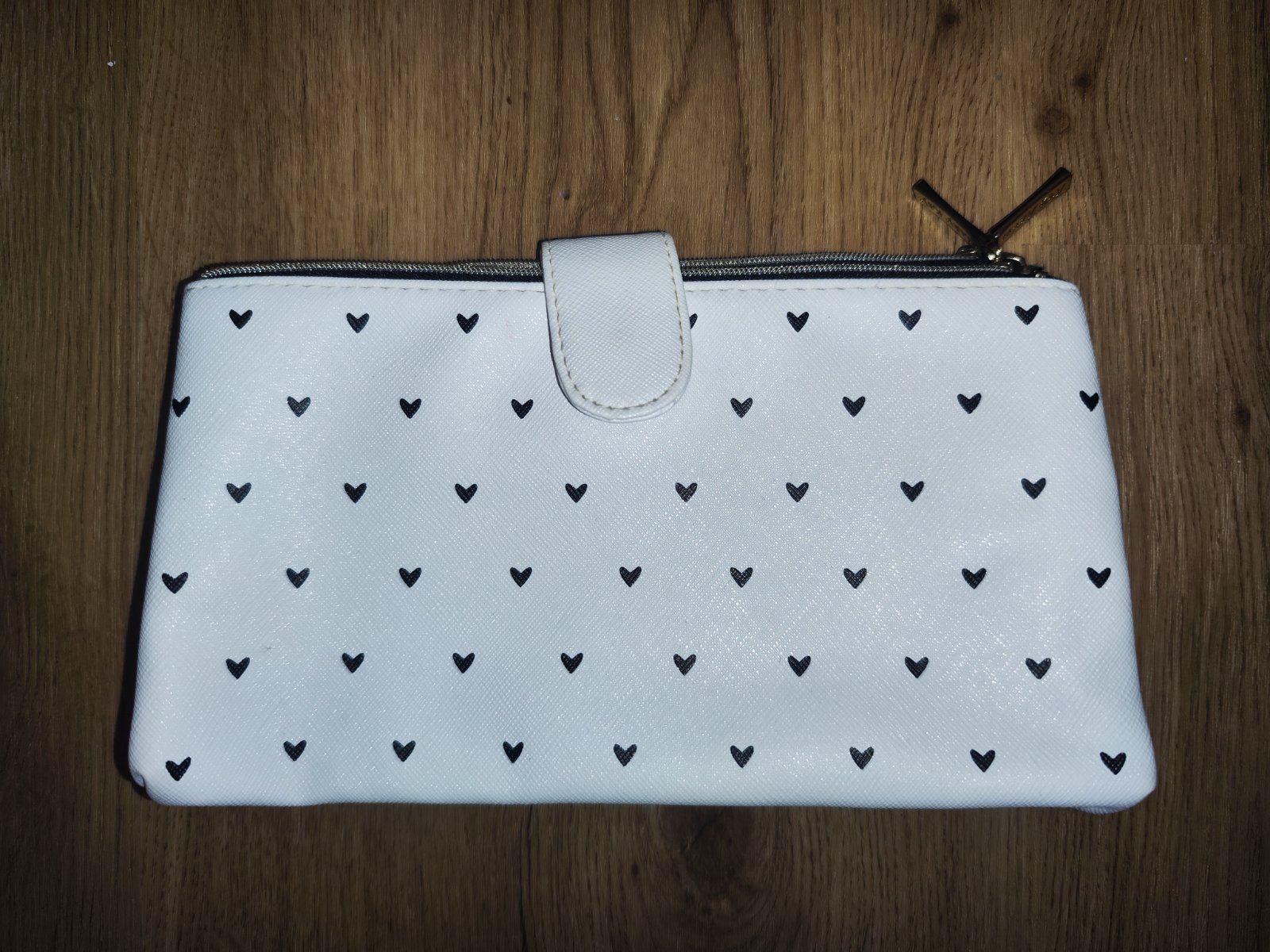 Prodám kosmetickou taštičku v bílé barvě s černými srdíčky. Má dva samostatné zipové oddíly a uprostřed pásek na druk, takže pěkně drží tvar a věci se v ní nerozsypou. Max. rozměry 22 x 13 cm. Bezva stav, vyčištěná, bez poškození, připravena k použití. Cena 60 Kč, v Brně možné osobní předání.