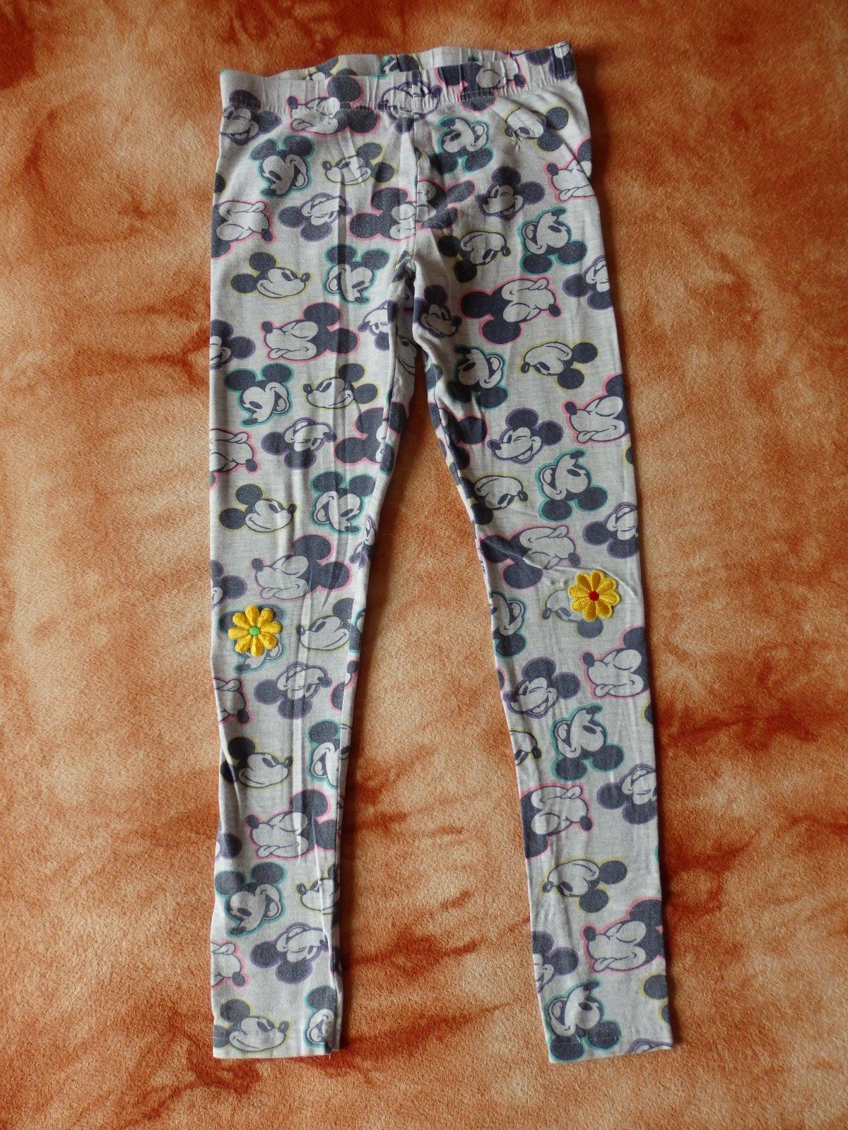 Legínky s Mickey Mousem, na kolenou nažehlené kytičky přes prodřené díky, nechám na donošení zdarma k objednávce.