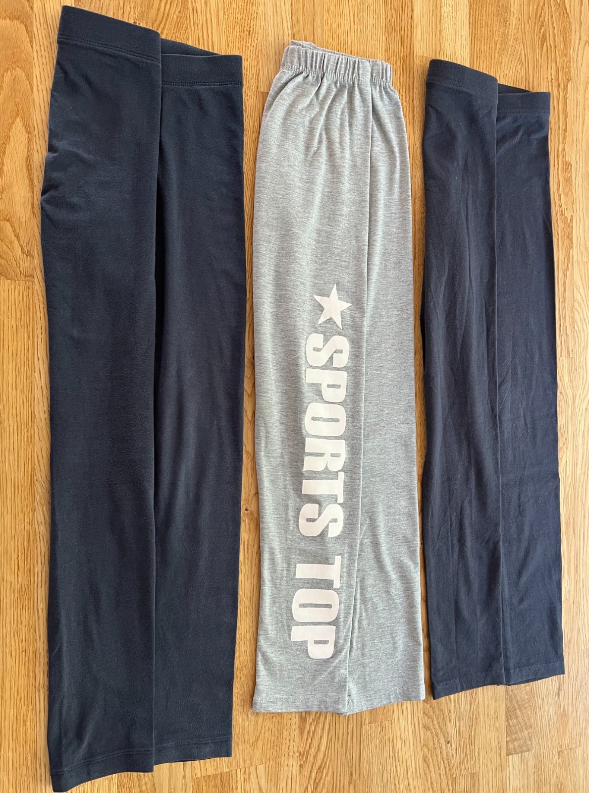 Rozměry: celková délka kalhot od pasu/rozkroku 71/52 cm, šířka v pase 2x23 cm (v pase guma).