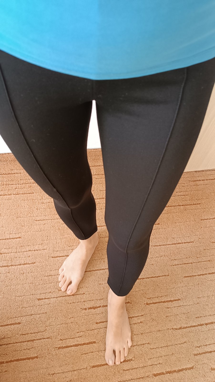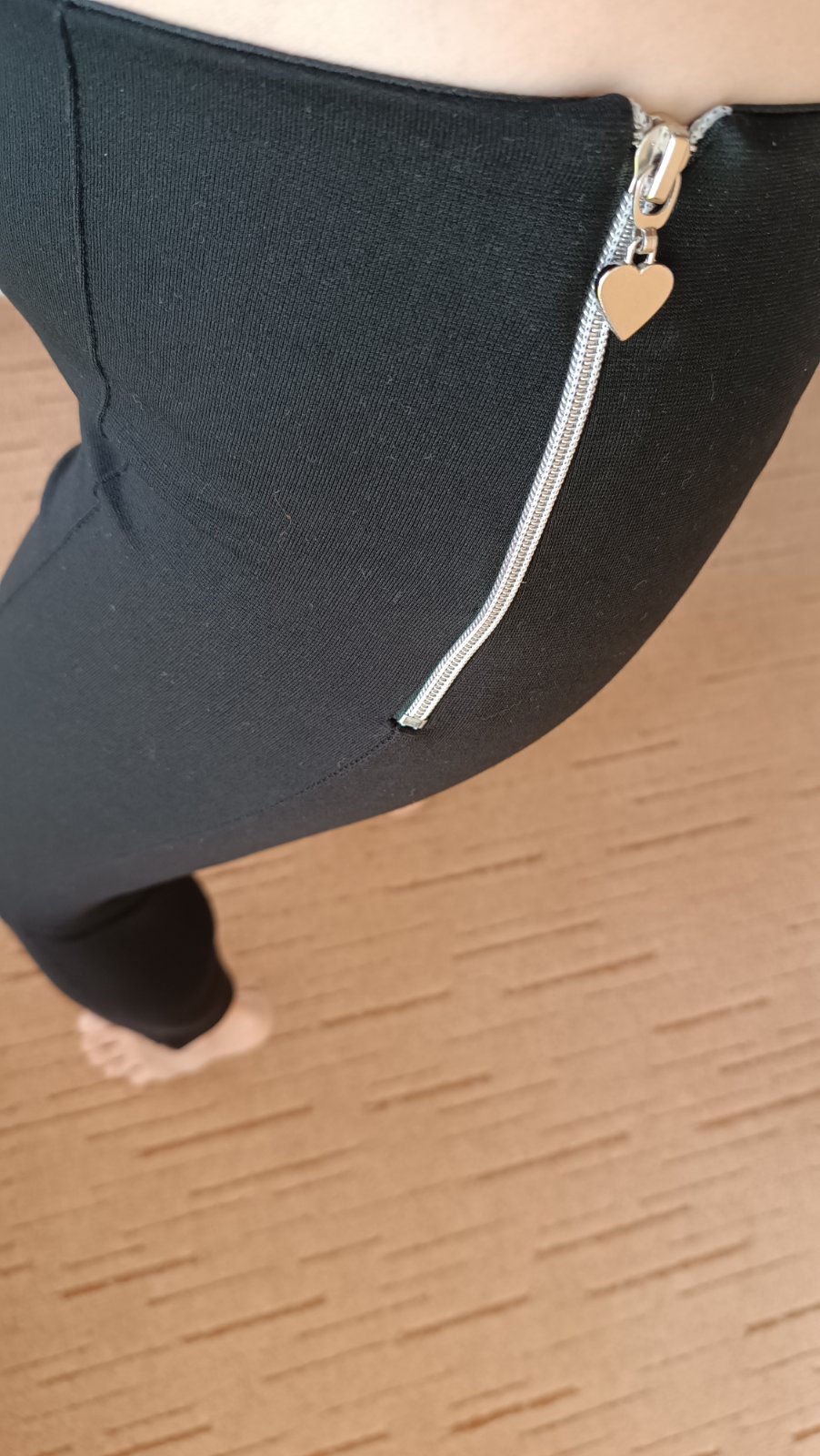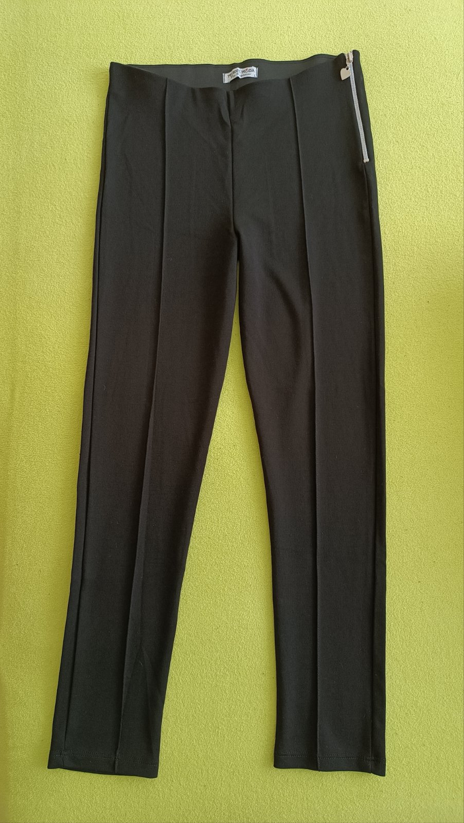 Jsou jen doma vyzkoušené. Necítím se v nich dobře. Na mě jsou příliš krátké nohavice. Nosí se tak, ale vím, že já je nosit nebudu. Jinak jsou krásné, pohodlné. Ani nejsou ještě prané. Kovový zip s krásnou srdíčkovou úchytkou. Velikost by mohla být i na postavu S. Přizpůsobí se dobře. Celková délka 87,5cm. Měřeno na boku. Kupované ve stánku, nezkoušela jsem je při nákupu. Původní cena 200Kč.