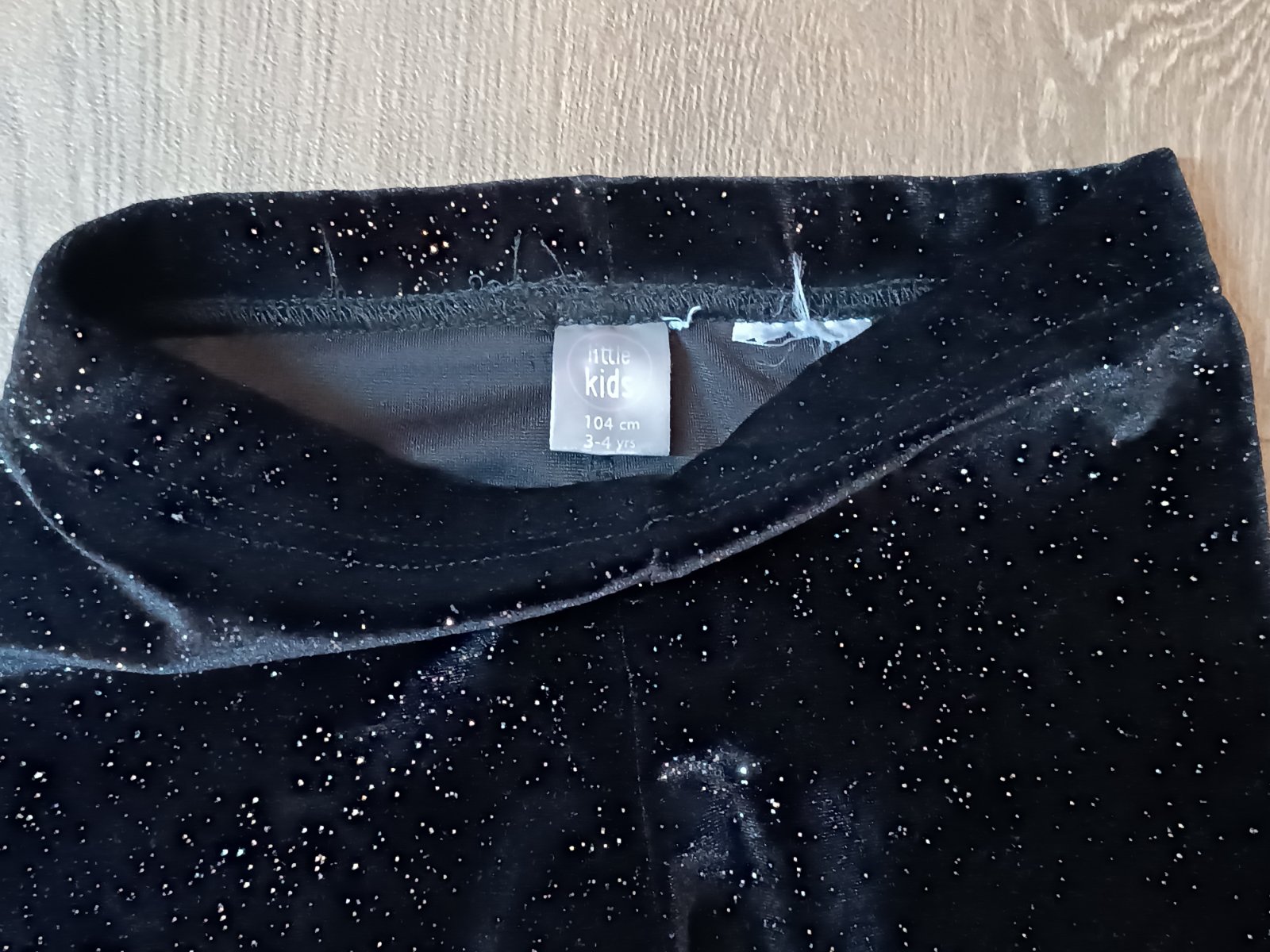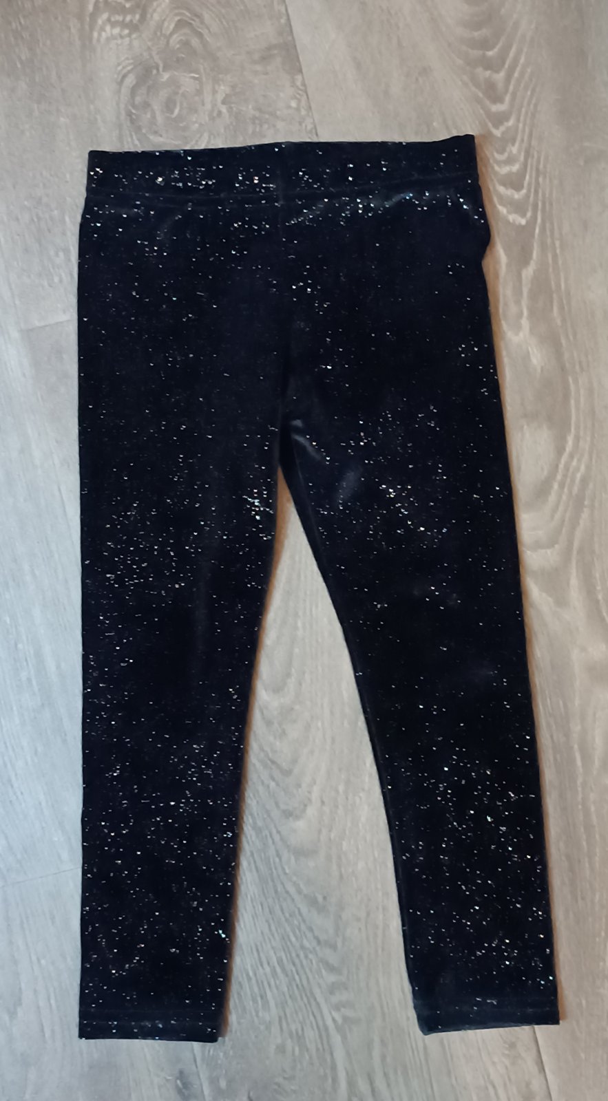 2) sametové teplejší černé legíny poseté třpytkami, zn.little kids, vel.104, příjemné, heboučké. Dvakrát na sobě.
