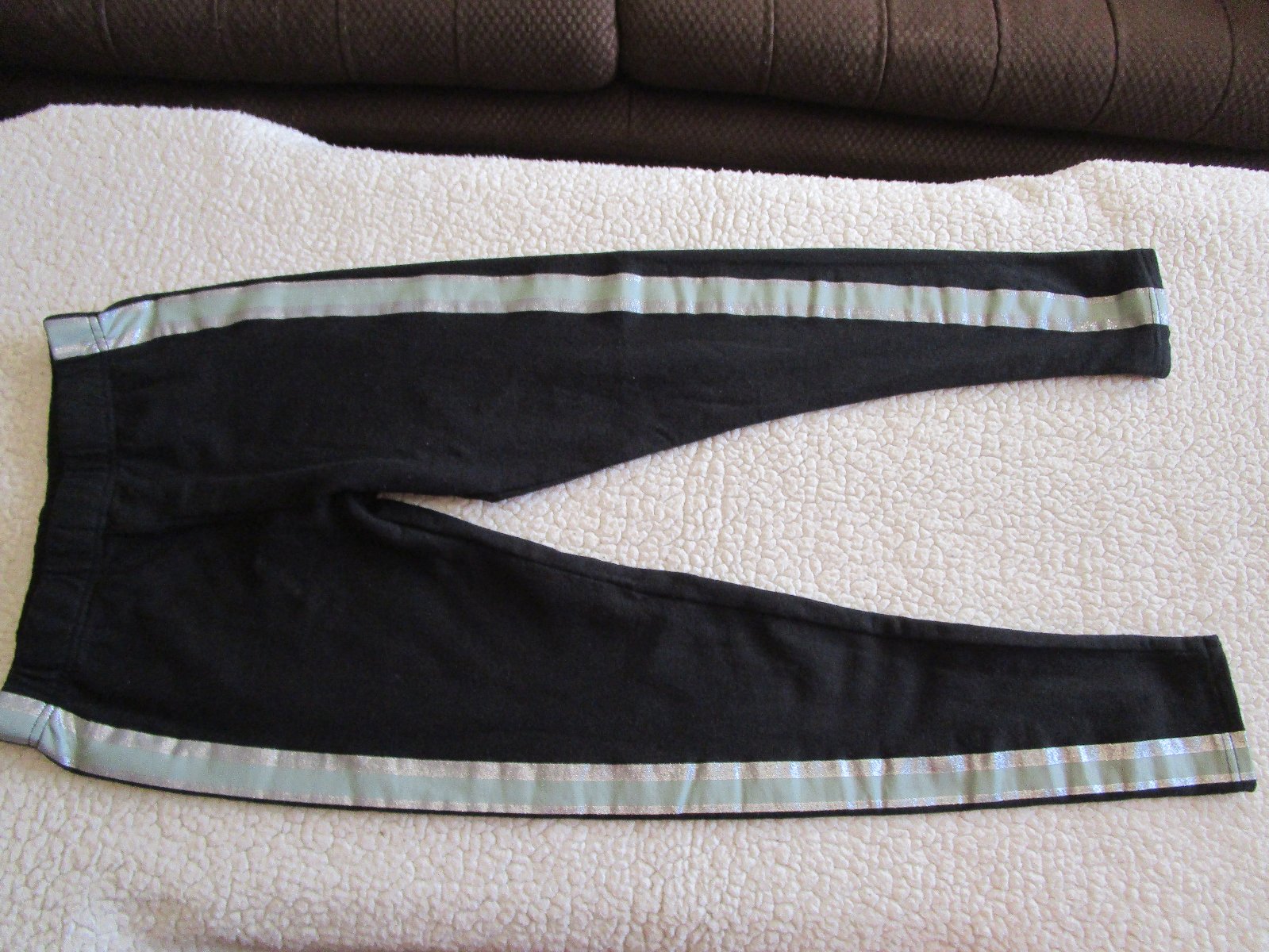 Pěkné černé bavl. teplejší legíny, po straně stříbrný proužek, vel. 146/152, v pase guma, délka 80 cm, jako nové, cena jen 59 Kč, z Takka.