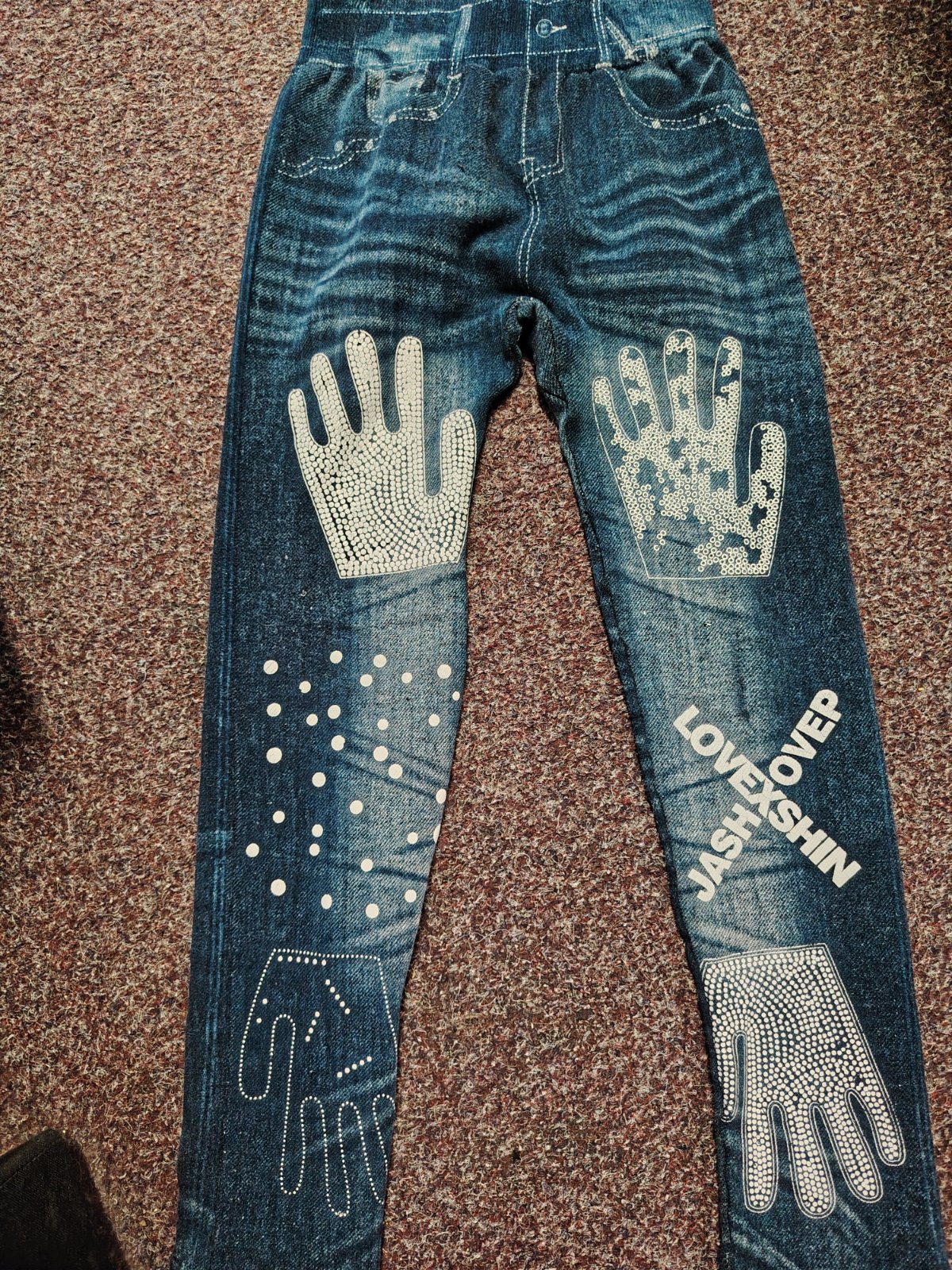 Nove s visačkou pružné Vypadající jako džíny Pas 2x26-43cm Délka 85 natahnou se Nohavice v rozkroku 59cm