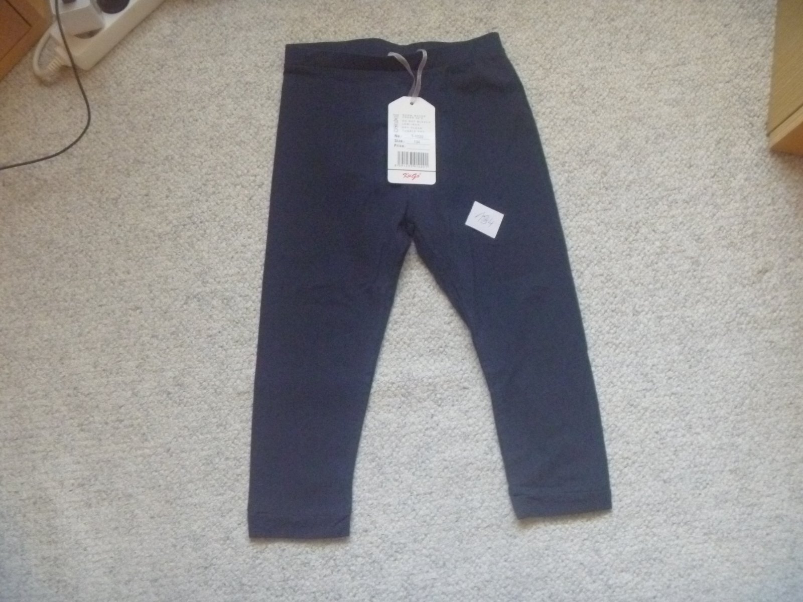 Prodám nové jednobarevné tmavě šedé 7/8 legíny, značka Kugo, velikost 134, materiál 95% bavlna, 5% elastan, pružný pas, zakončení do manžety, celková délka 55 cm, ještě s visačkou, vhodné jako dárek.