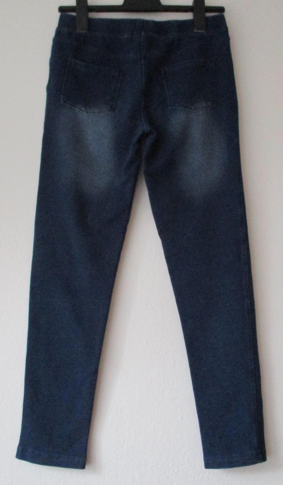 Nabízím dívčí džegíny z Lidlu, vel. 158/164, téměř nenošené, bez vad. Barva tmavomodrá, složení 76% bavlna + 20% polyester + 4% elastan. Rozměry: pas 36 cm v klidu (46 cm po natažení), celková délka 90 cm, délka od rozkroku 70 cm.