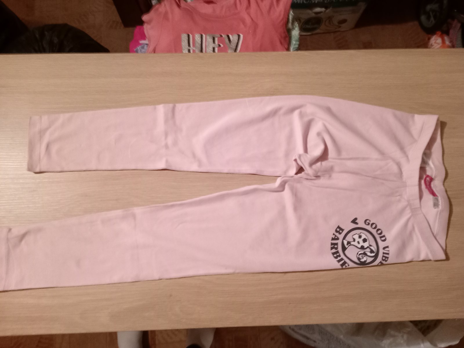 2x legíny Barbie 134/140 - pěkný stav, maskáč 140 - na donošení, cena za oboje, pošta 55 Kč