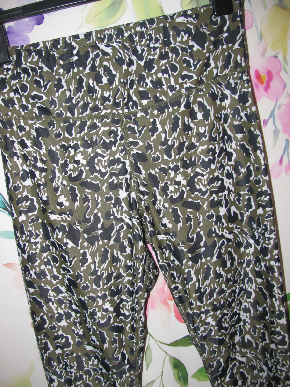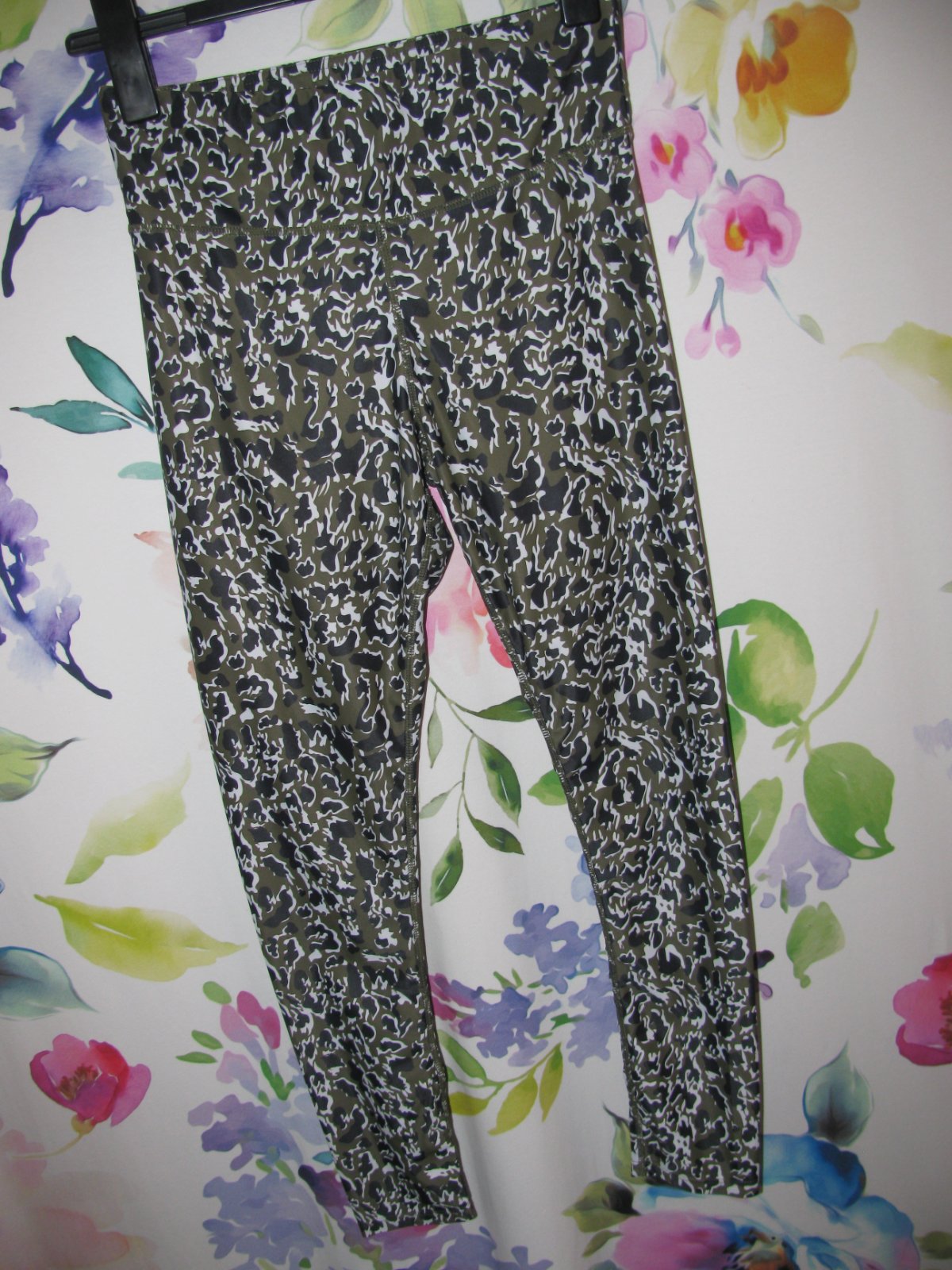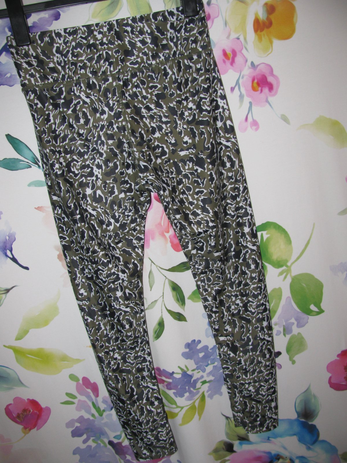 Khaki legíny s černobílým vzorem, v pase do gumy, nylon, elastan. Top stav bez vady, velmi málo nošené.