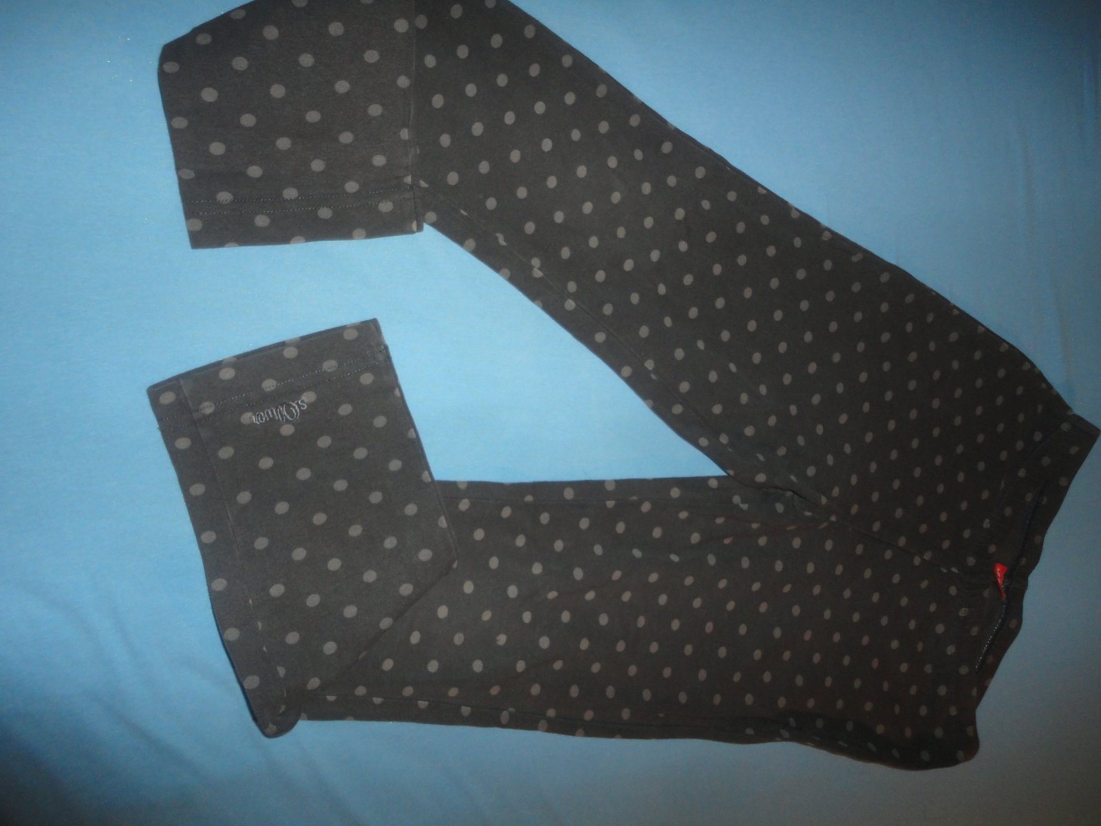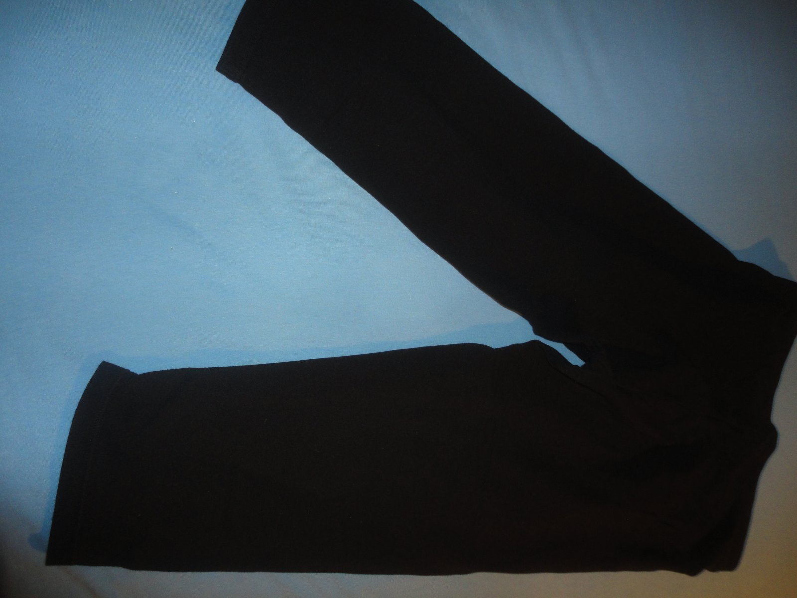 *Šedé dlouhé legíny se světle šedými puntíky, značka s.Oliver, vel. 152, materiál 95% bavlna, 5% elastan, d. 75cm, vnitřní 53cm, pas 27-32cm, cena 60Kč. **7/8 sytě černé legíny ZARA, vel. 11-12 let, materiál 95% bavlna, 5% elastan, d. 57cm, vnitřní 36cm, pas 28-32cm, cena 60Kč.