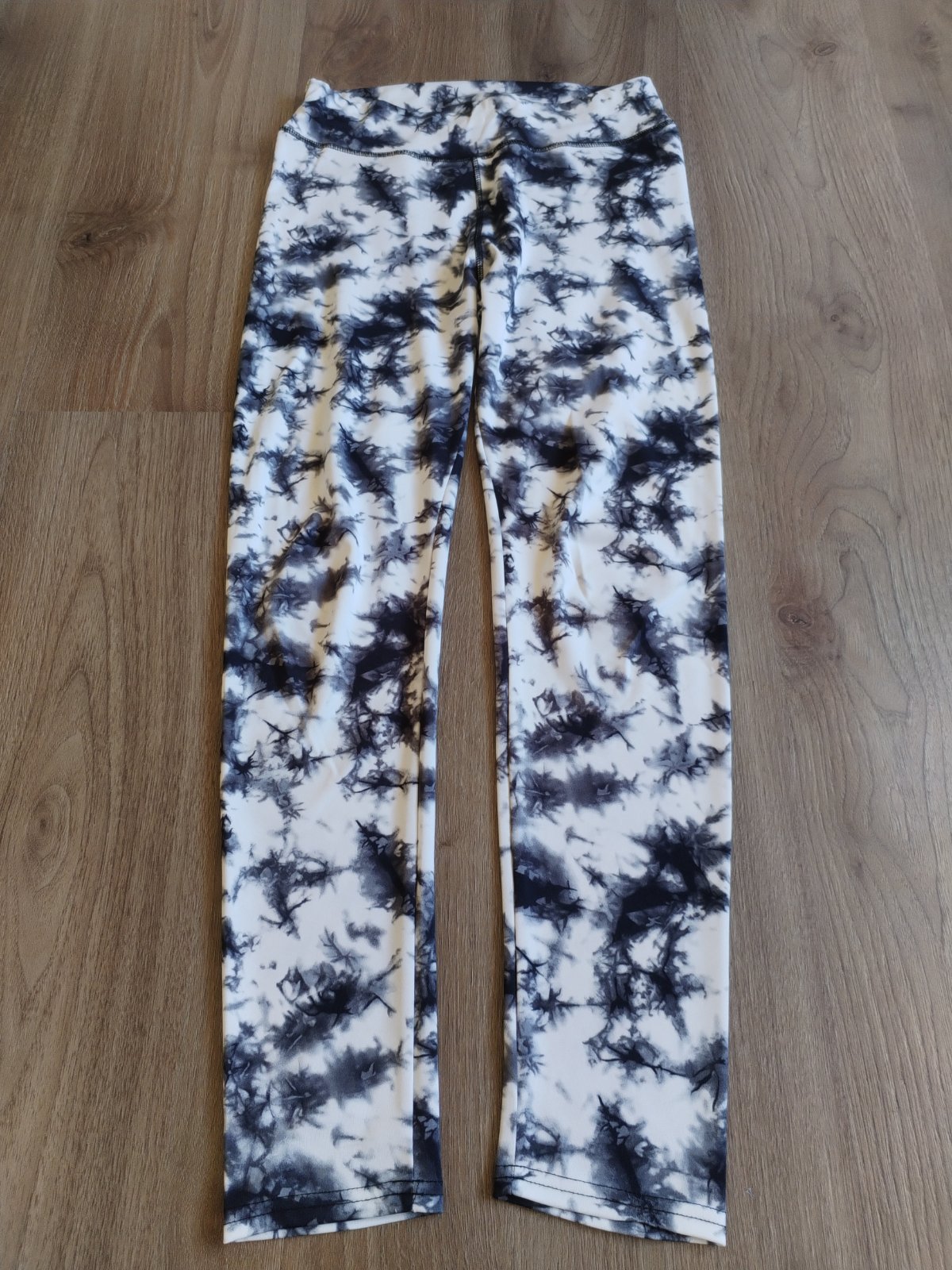 Velmi příjemné a slušivé batikované legíny na sport, velikost dámská M/38, rozměry pas 2x33-40 cm max, délka 97 cm, černobílé, z čisté nekuřácké domácnosti, minimálně nošené = v top stavu, pružné, cena 120 Kč