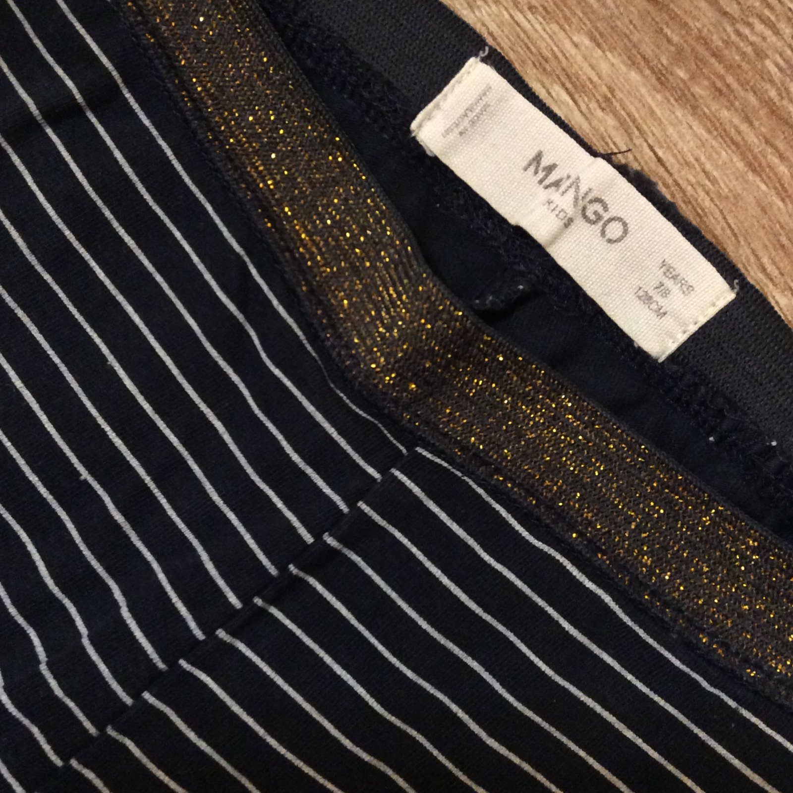 - pěkné pružné legíny s proužkem a v pase se třpytkatou zlatou gumou, barva: hodně tmavě modrá