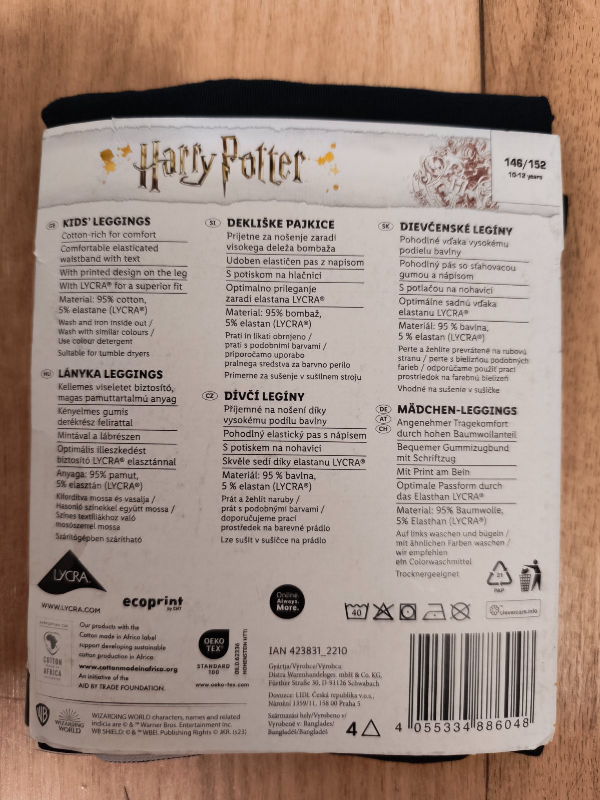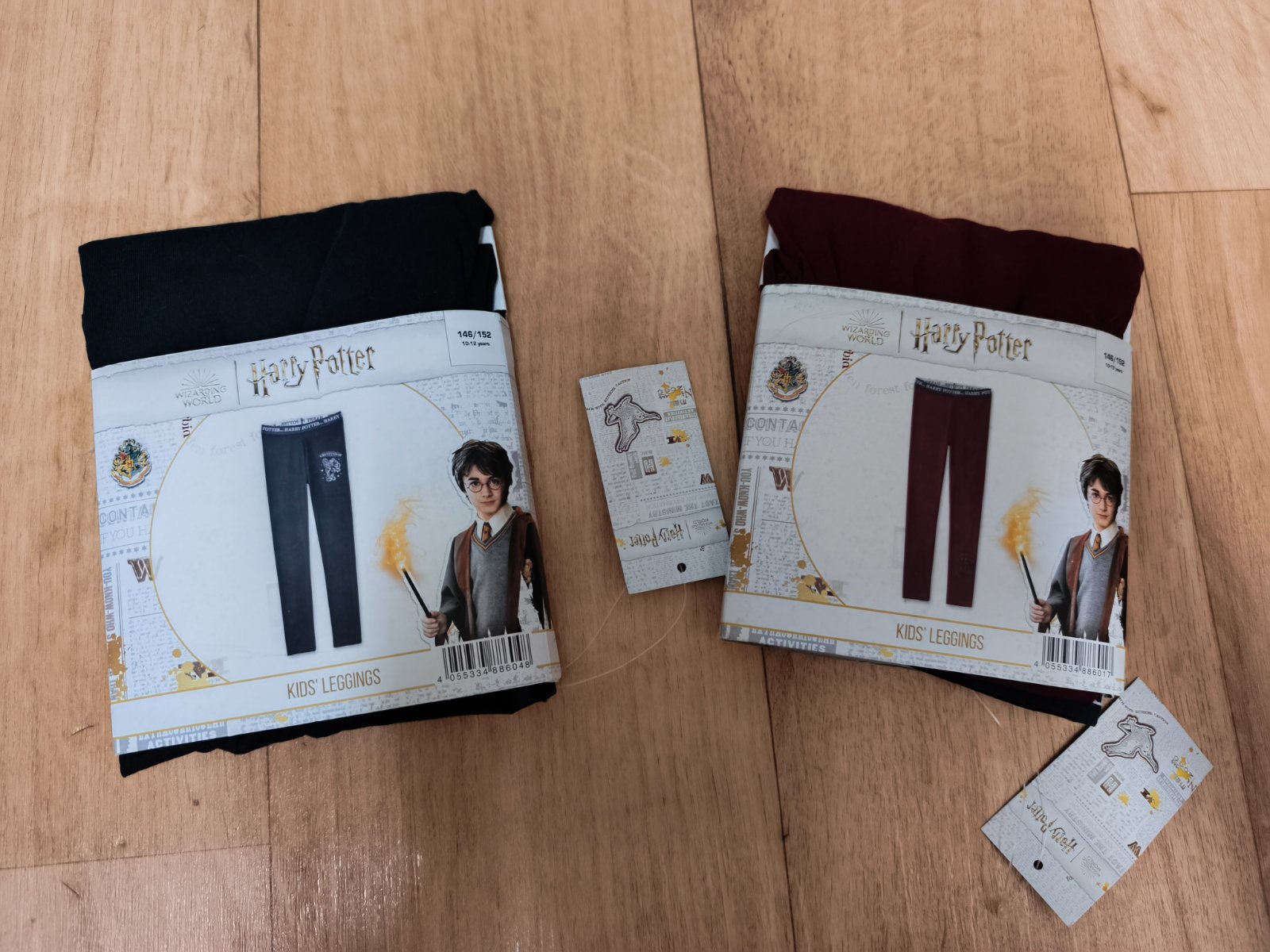 Dvoje legíny s motivy Harryho Pottera. Tmavě modré a vínově červené.Vysoký podíl bavlny (95%). Velikost 146/152.