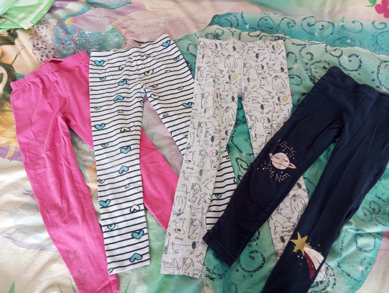 Pěkné zateplene leginy, velikost psaná 122/128, širší nohavice. Délka 70 cm, od rozkroku 50cm, pas 2x 28cm. Cena za kus 50 Kč.