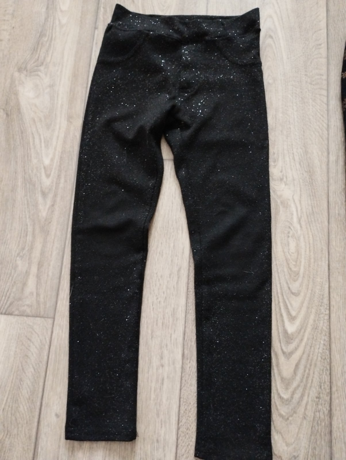 Použité legíny,vel. 140,ale jsou na postavu vel 120. Bez vad, černé se stříbrnými třpytkami.