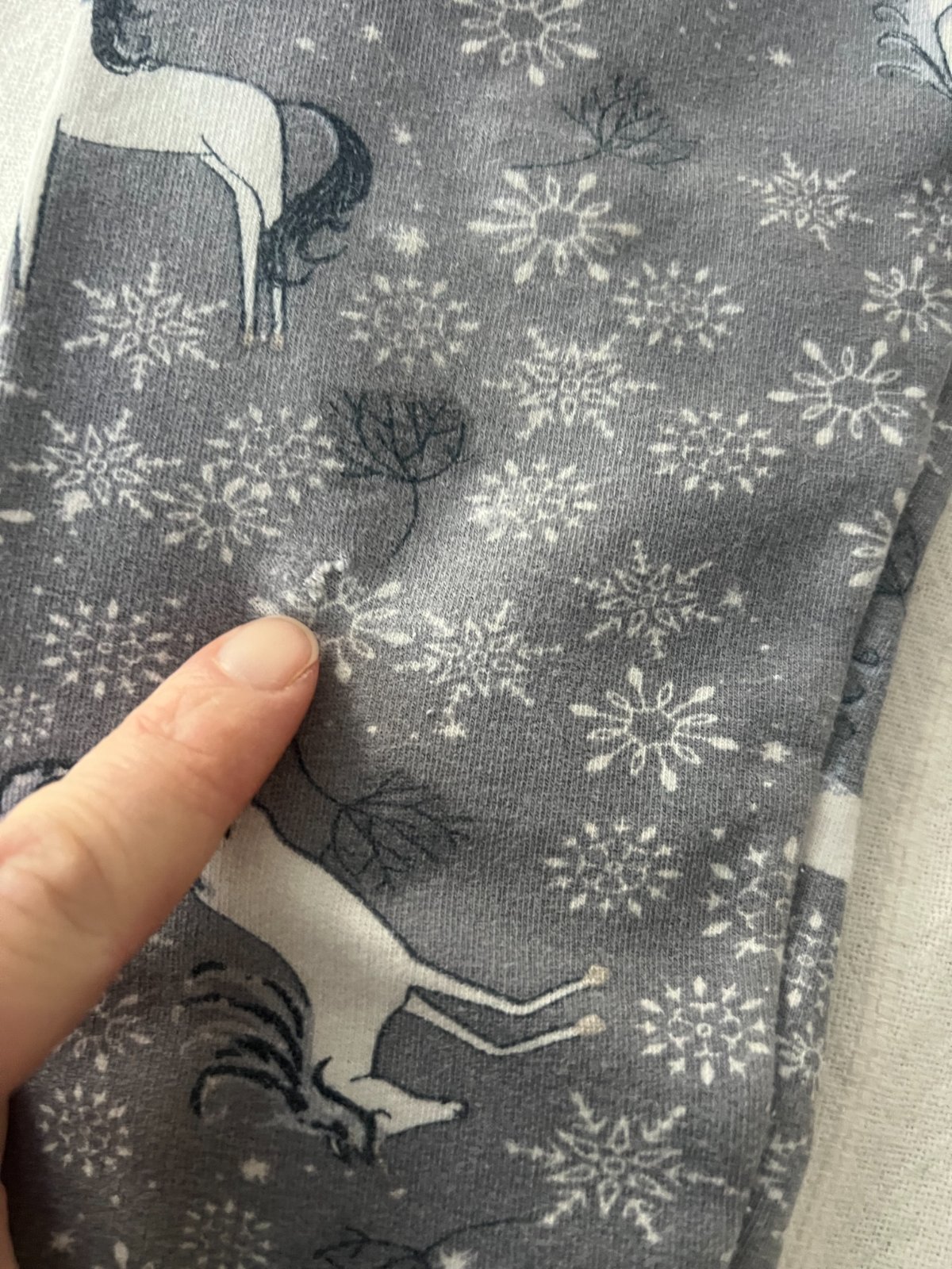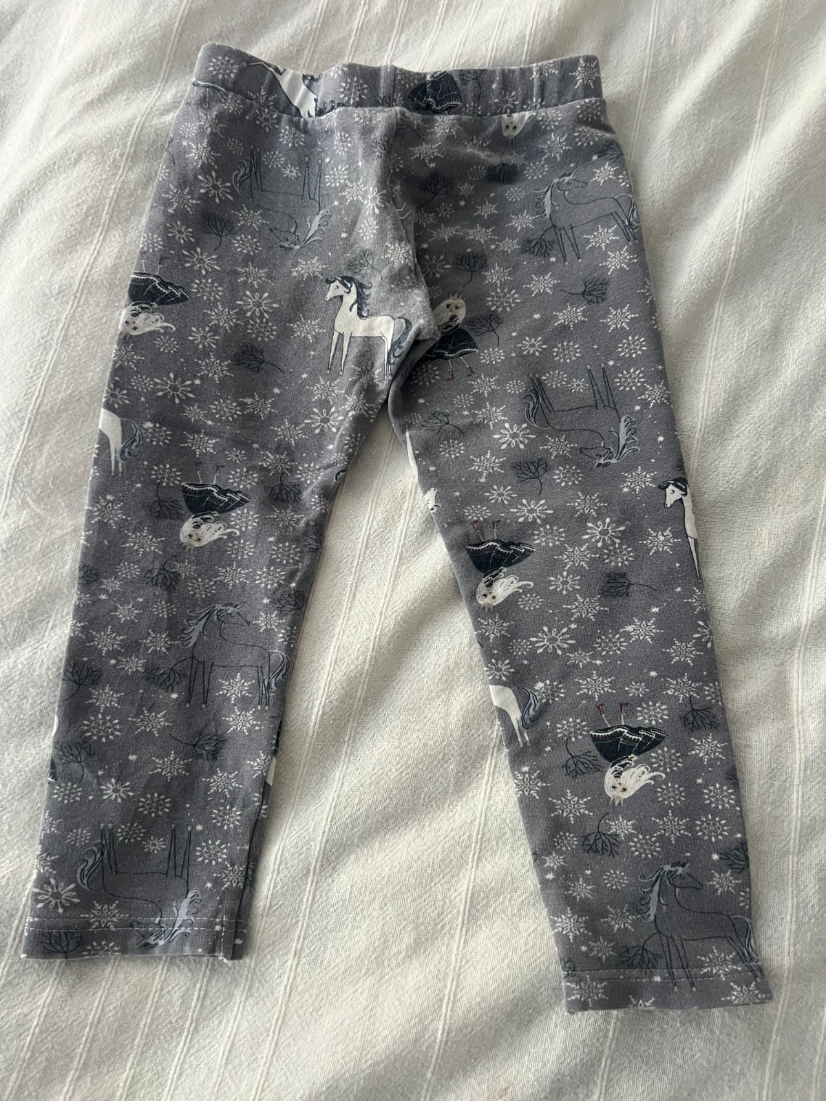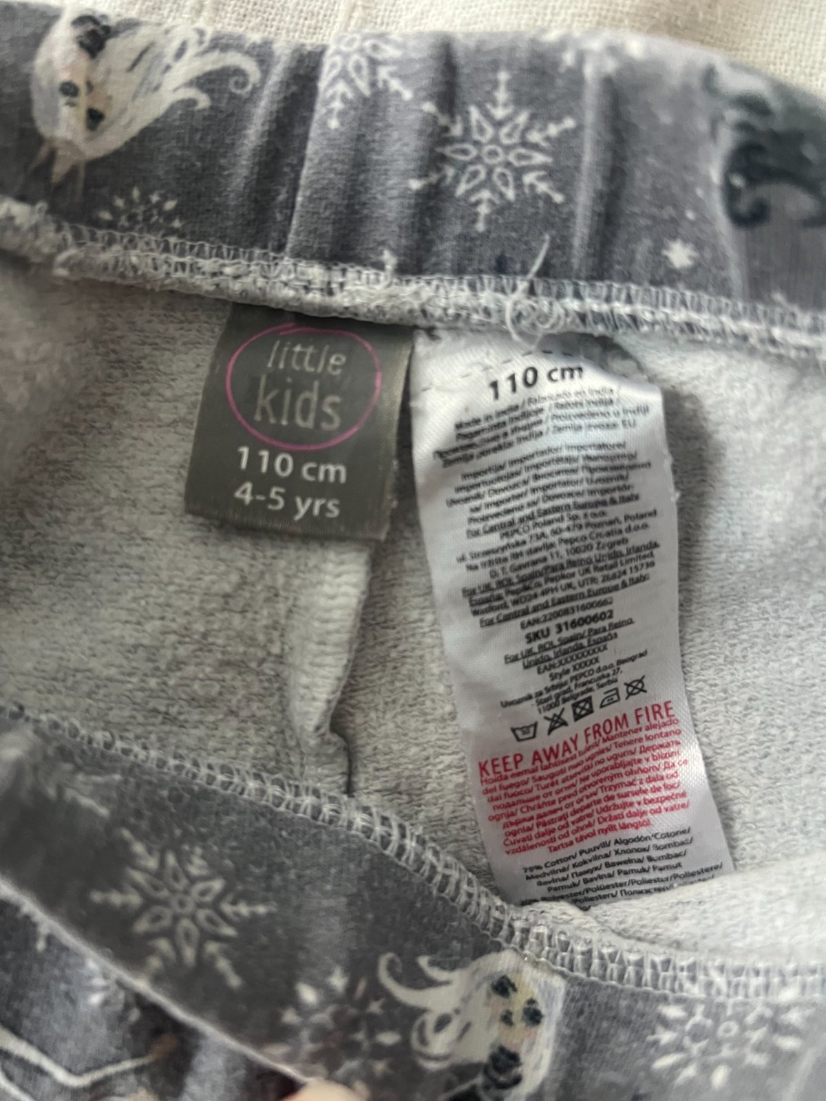Psaná velikost 110, ale je menší. Jedna zašitá dírka. Délka 46,5 cm, délka od rozkroku 35 cm, pas 24-32 cm.