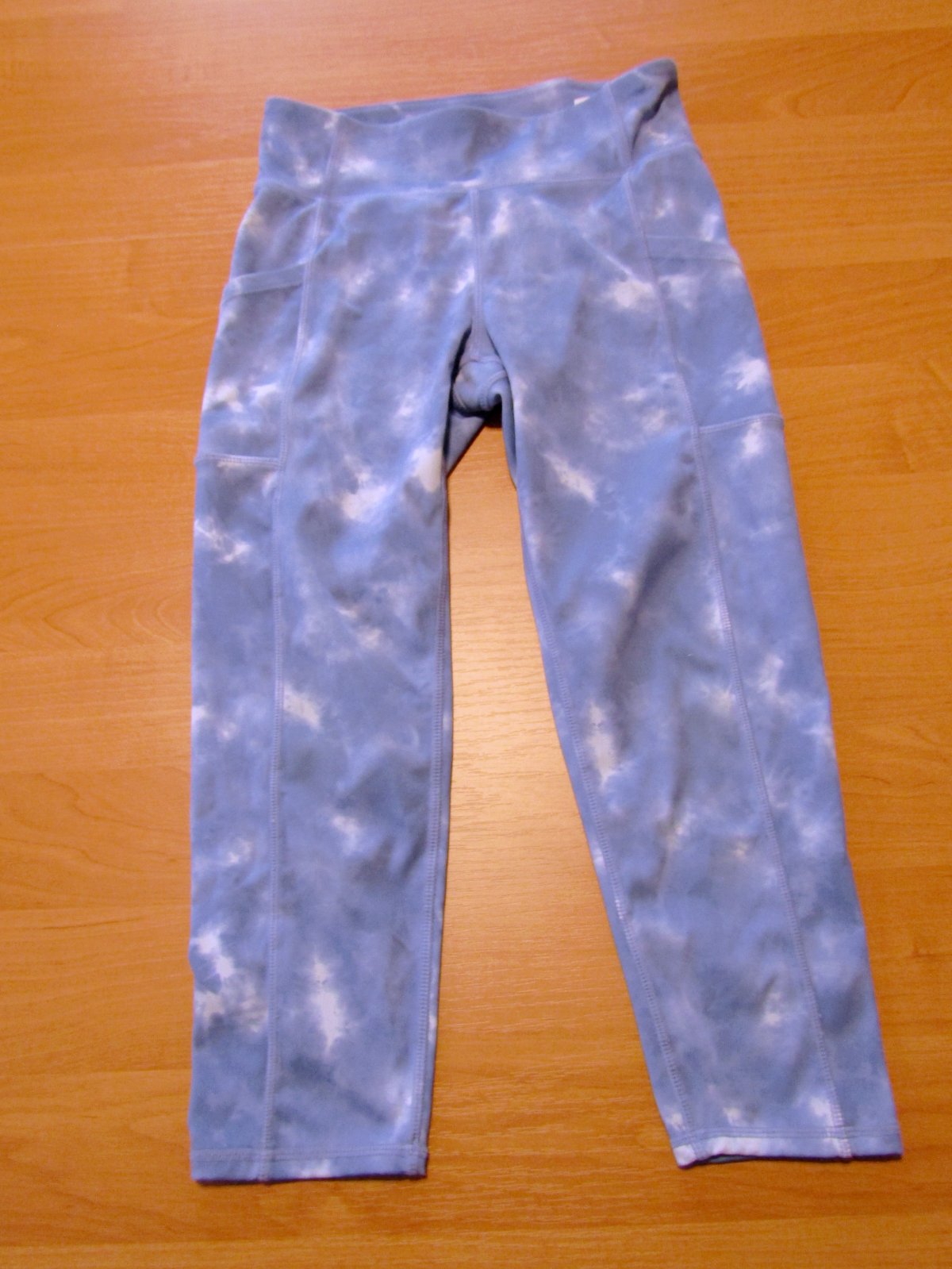 Legínky se zajímavých vzorečkem, kolena již šislá, malá dírečka, která by měla jít zašít, ale spíše už na lítačku. Vel. 146