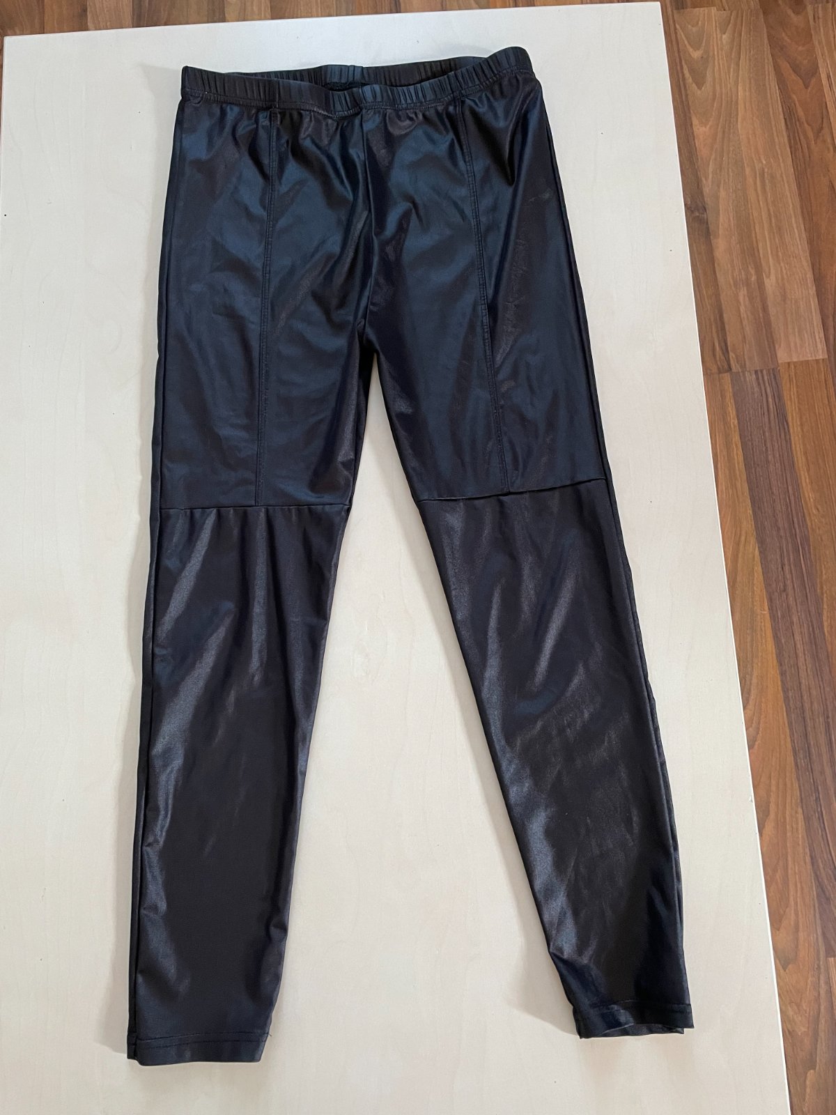 hol. nabíztím k prodjei tyto černé leginy v lesku a s prošitím, vel není uvedena - nošené při S/M a asi možno i méně, a spíše menší postavu. Materiál tenký, lesklý, takový silonový - složení neuvedeno. Nošené, bez vad, krásné