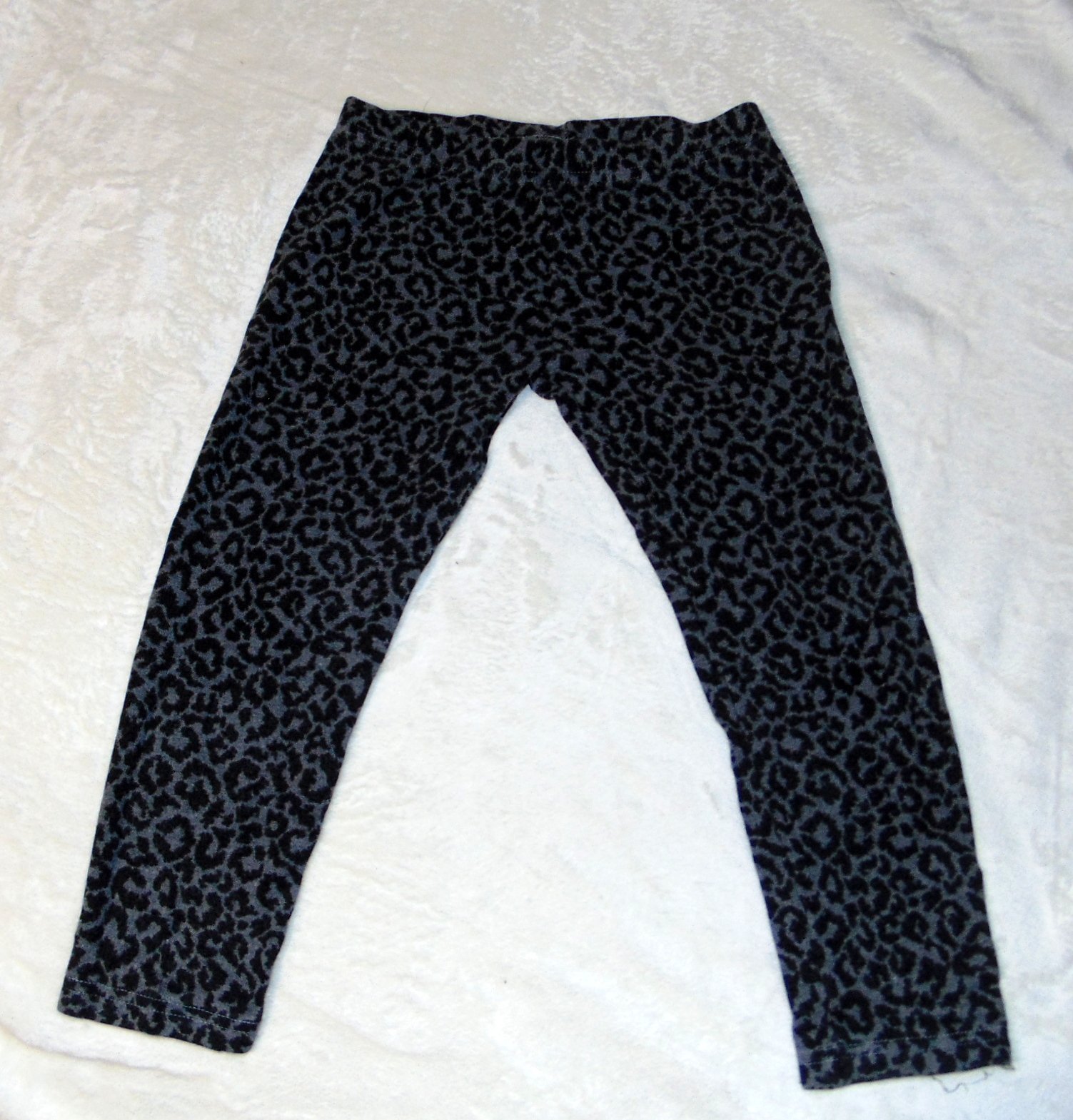 Uvedená vel. 8-9 let, ale měřte, řekla bych spíš dříve, na těch 8 let, my neužili, šedý základ, černý potisk květů, materiál 48% polyester, 47% banlna, 5% elastan, d. 72, vnitřní 54,5cm, pas 25-28cm