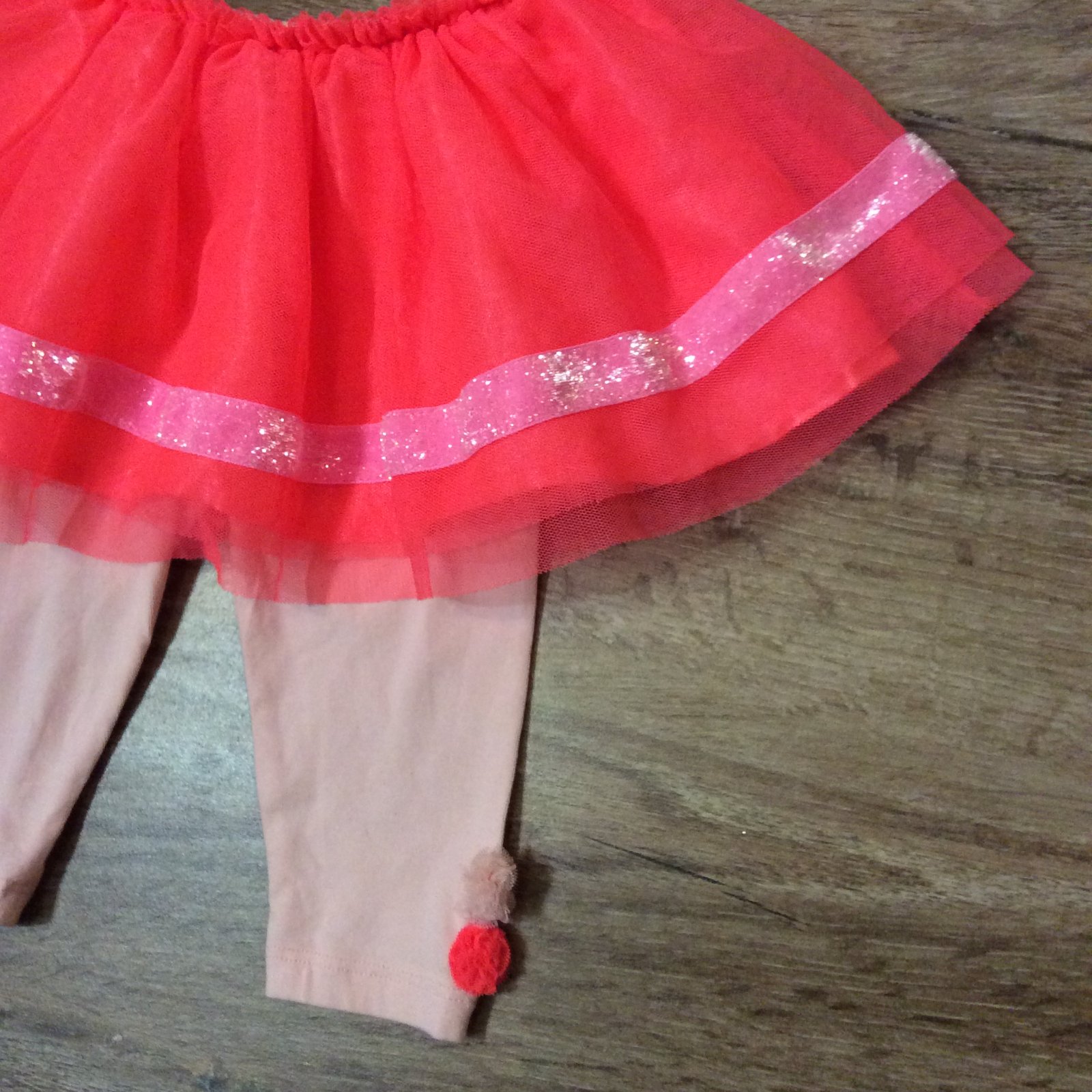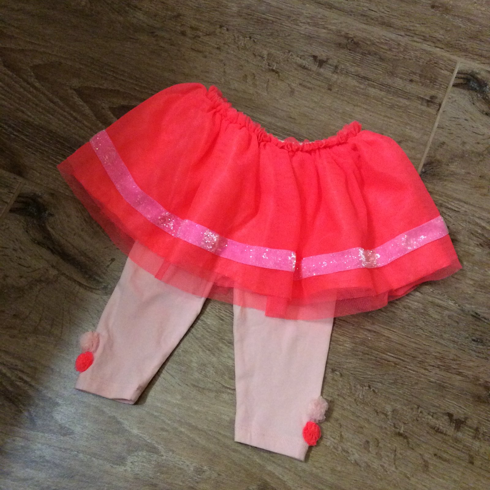 - krásné bavlněné legíny s tylovou neon sukýnkou se třpytkami a po stranách zdobené našitými bambulkami