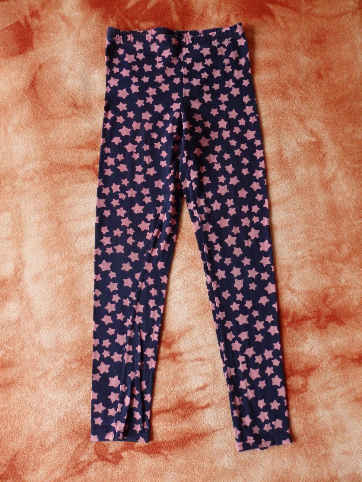 Pěkné tmavě modré legíny s růžovými hvězdičkami, v dobrém stavu.