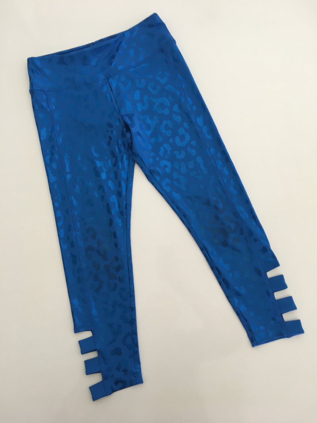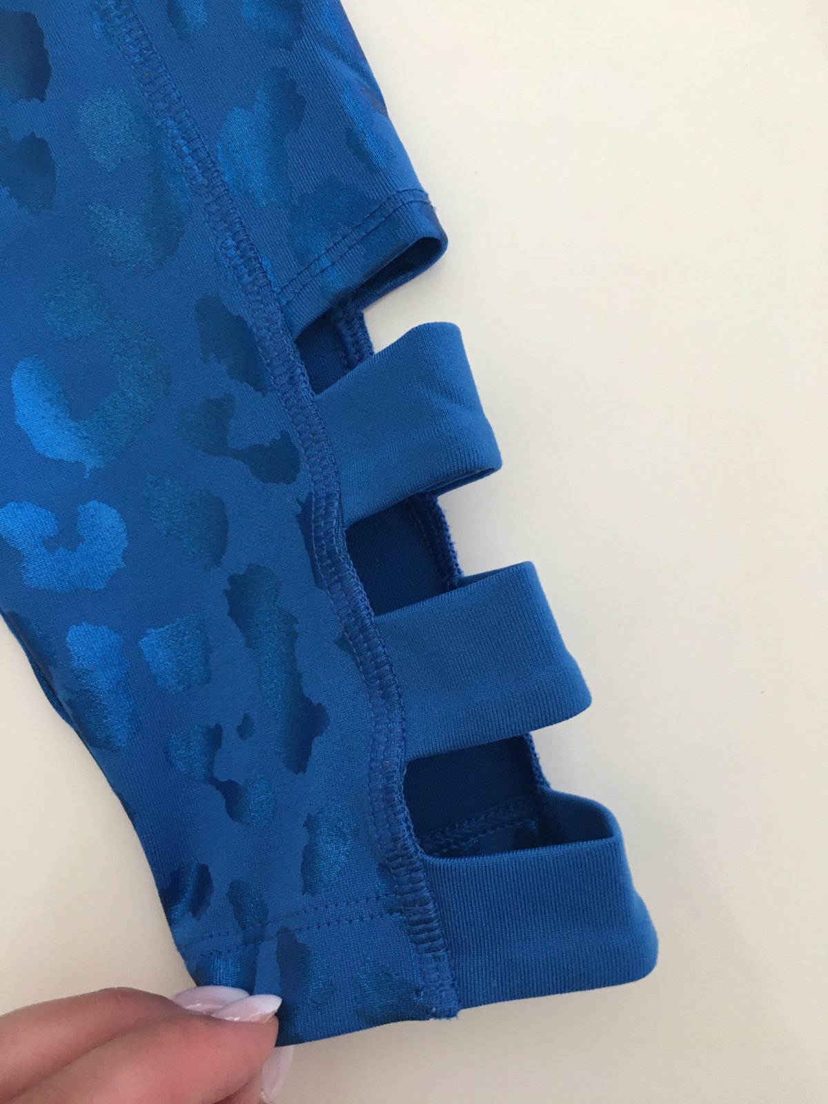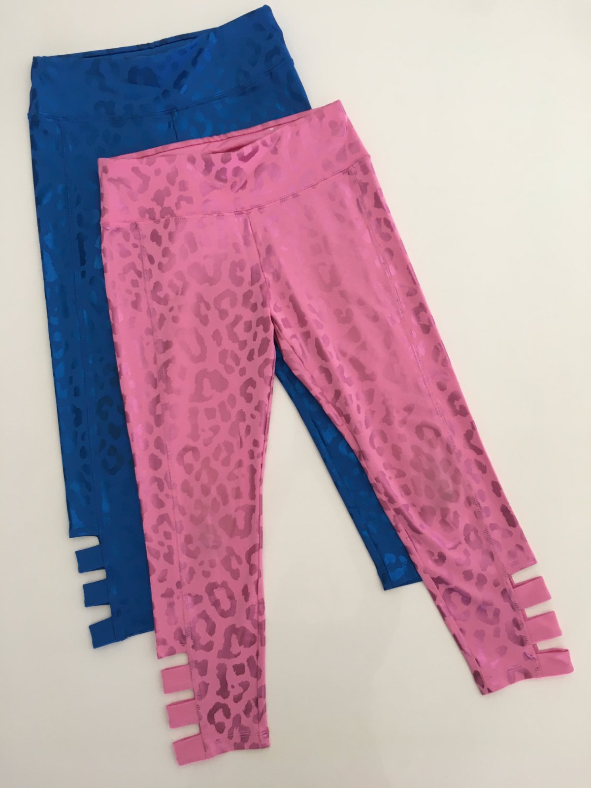 Modré a růžové 3/4 legíny s průstřihy: