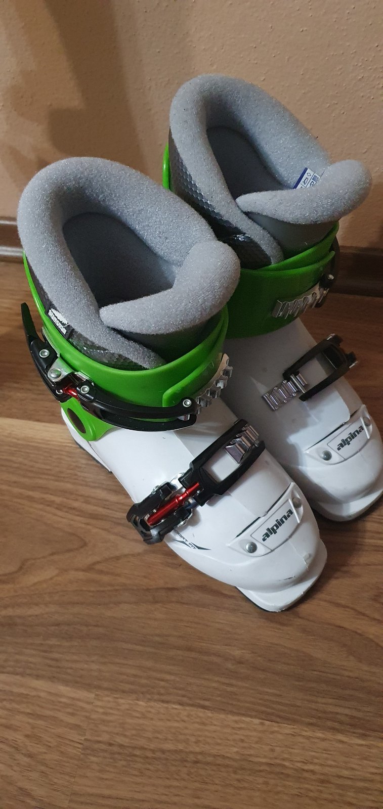 Prodám lyžáky alpina, kupované nové, používané dvěma dětmi příležitostně, velikost 32, 200mm, vnější 245mm., běžné známky opotřebení - oděrky, cena 400 kč.
